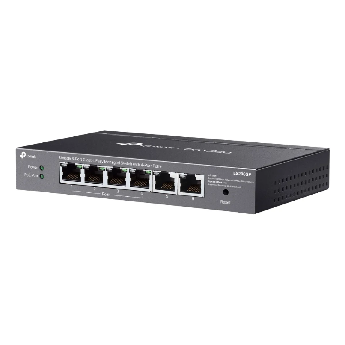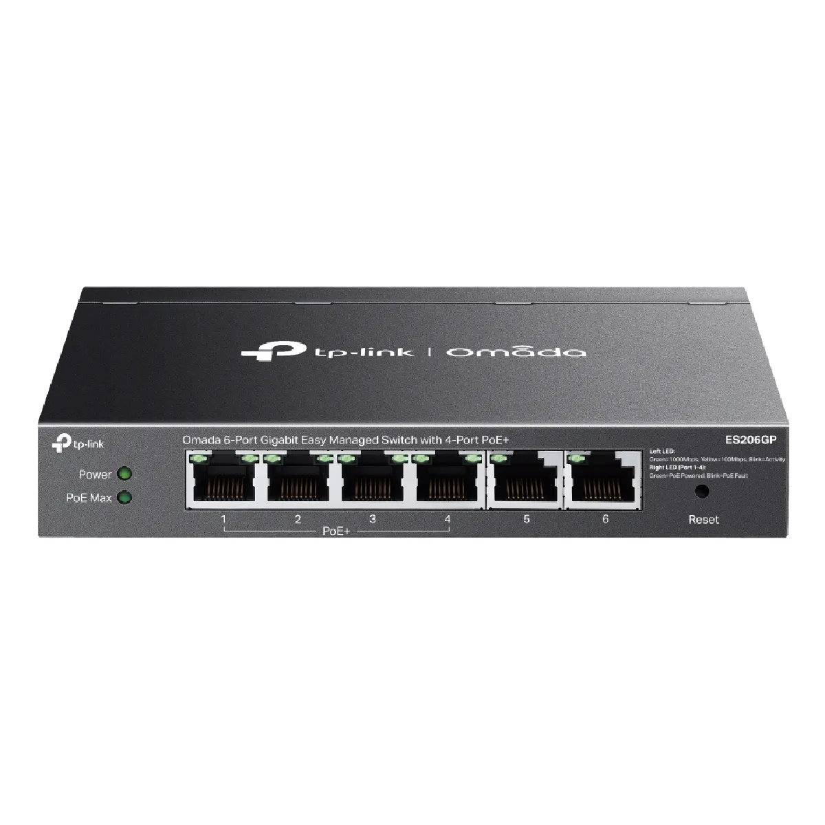 TP-Link Omada ES206GP V1 - Commutateur - Géré - 4 x 10/100/1000 (PoE+) + 2 x 10/100/1000 - de bureau, fixation murale - PoE+ (65 W)