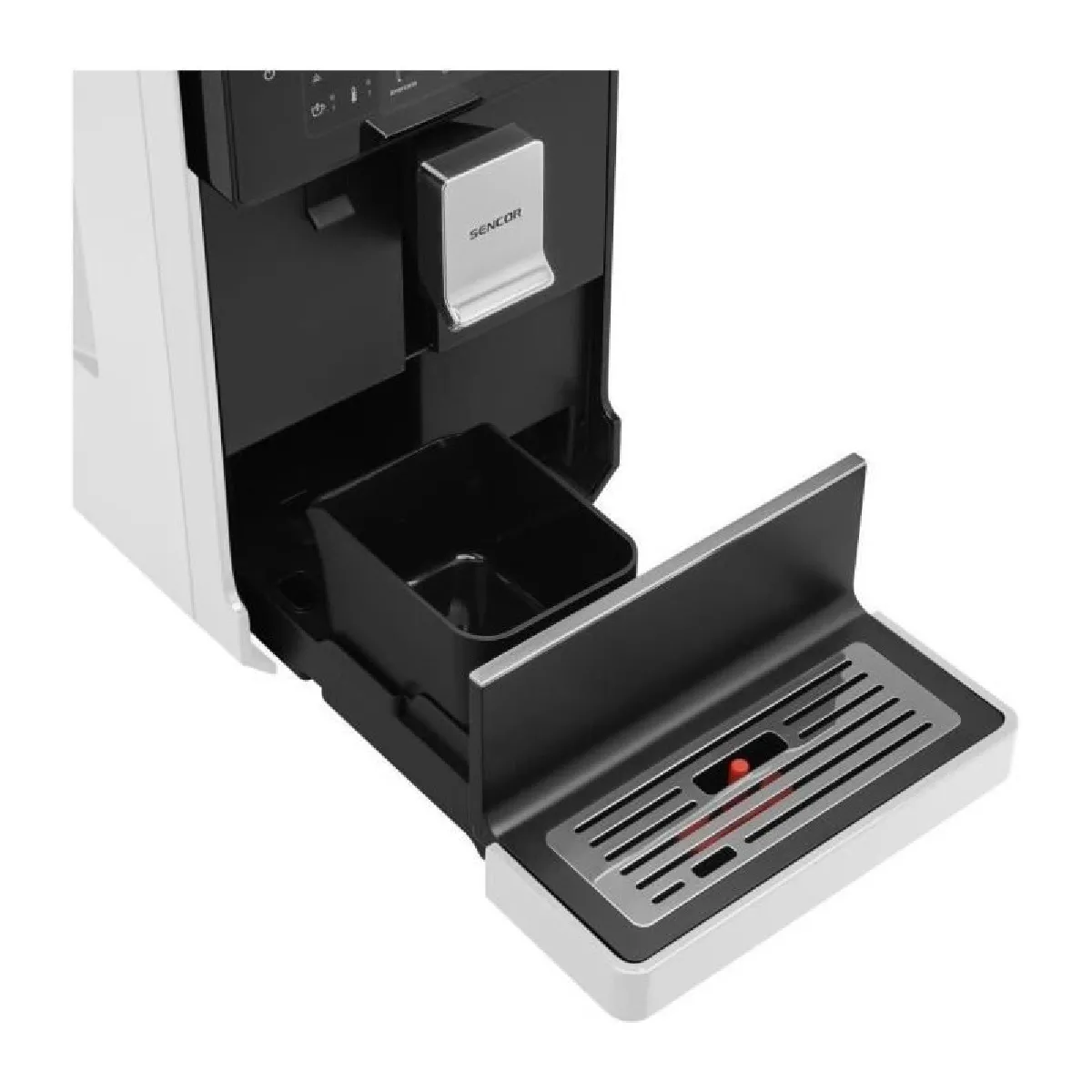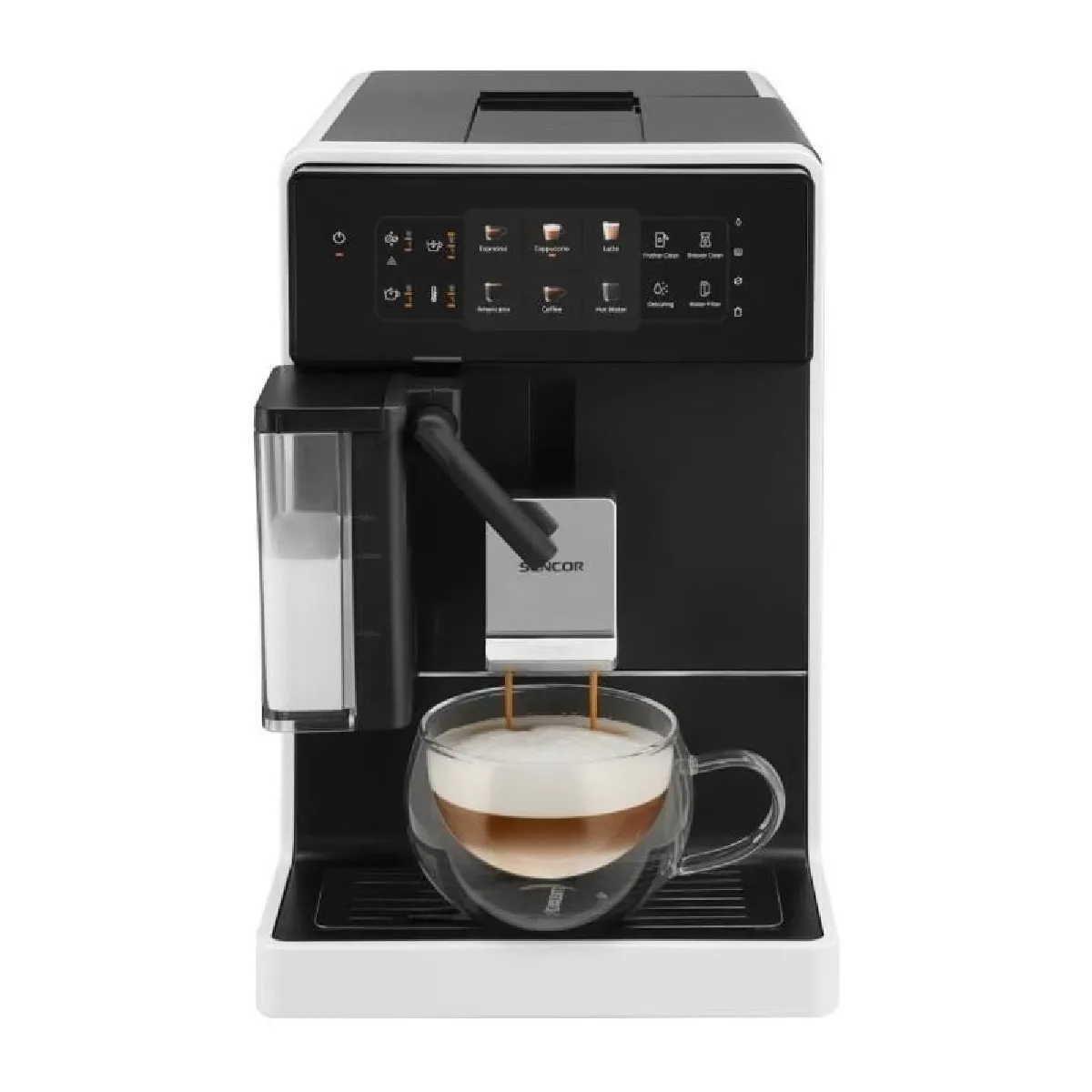 L'extraction à 19 bars assure une tasse équilibrée avec une bonne crema, tandis que le broyeur intégré en acier inoxydable permet d'ajuster la finesse selon vos habitudes. Pensée pour gagner de la place, cette machine accueille un réservoir de 1,3 l dans un format compact de 28 × 41 × 14 cm. Le panneau d'affichage facilite les réglages et la préparation d'un café en grains ou moulu reste simple et directe. Avec son mousseur à lait, elle prépare des boissons lactées sur demande. Le tout est piloté de manière intuitive grâce à un écran d'affichage clair qui accompagne chaque étape de la préparation.