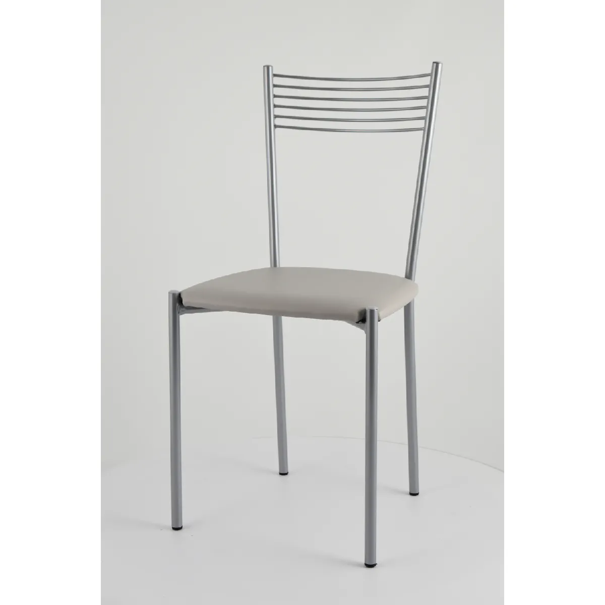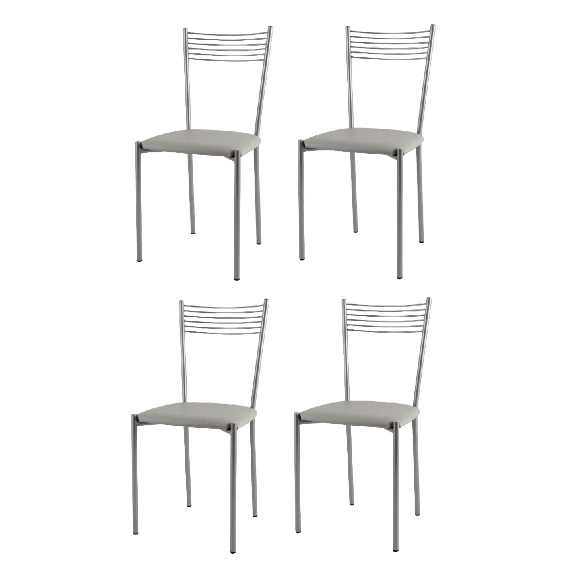 T M C S Tommychairs - Set 4 chaises Elegance structure en acier peindré alluminium, assise revêtue en cuir artificiel gris clair |