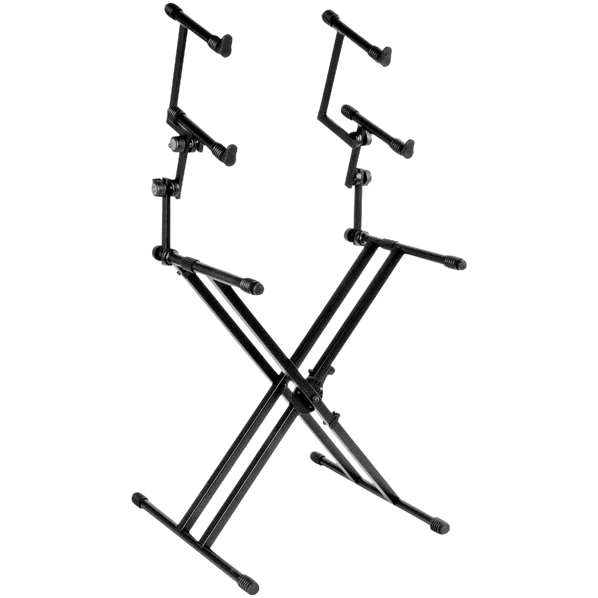 Modèle Quik Lok QL623 Stand clavier X double "Performer" avec trois niveaux, série Performer, support pour clavier, en acier, de coloris noir, hauteur réglable et pliable.