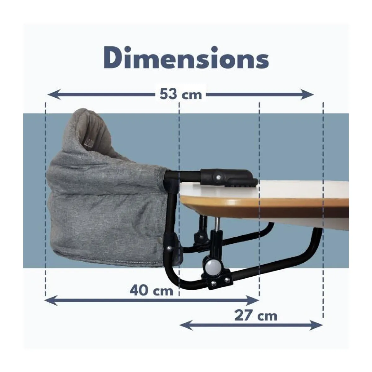 La fixation multi-points s'appuie sur une vis de serrage pour ajuster précisément la tenue sur le plateau. Ce principe facilite l'adaptation à différents plateaux dans les limites recommandées par le fabricant, et aide à stabiliser le siège pendant l'usage. Le pliage compact rend l'ensemble facile à transporter pour les visites et les sorties, tout en économisant l'espace de rangement à la maison.