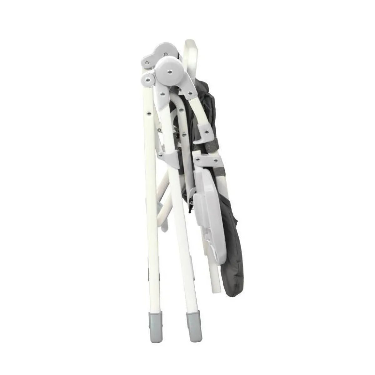 La structure pliante permet un gain de place appréciable dans les petites cuisines, avec un format réduit une fois fermée pour le rangement derrière une porte ou dans un placard. Le siège est entièrement déhoussable et lavable en machine, ce qui simplifie l'entretien après les repas. Le harnais 5 points avec protections d'épaules offre plusieurs points d'attache pour une installation maîtrisée lors de l'assise et de la sortie. La chaise atteint 84 cm de hauteur une fois ouverte, assurant une position pratique près de la table familiale.