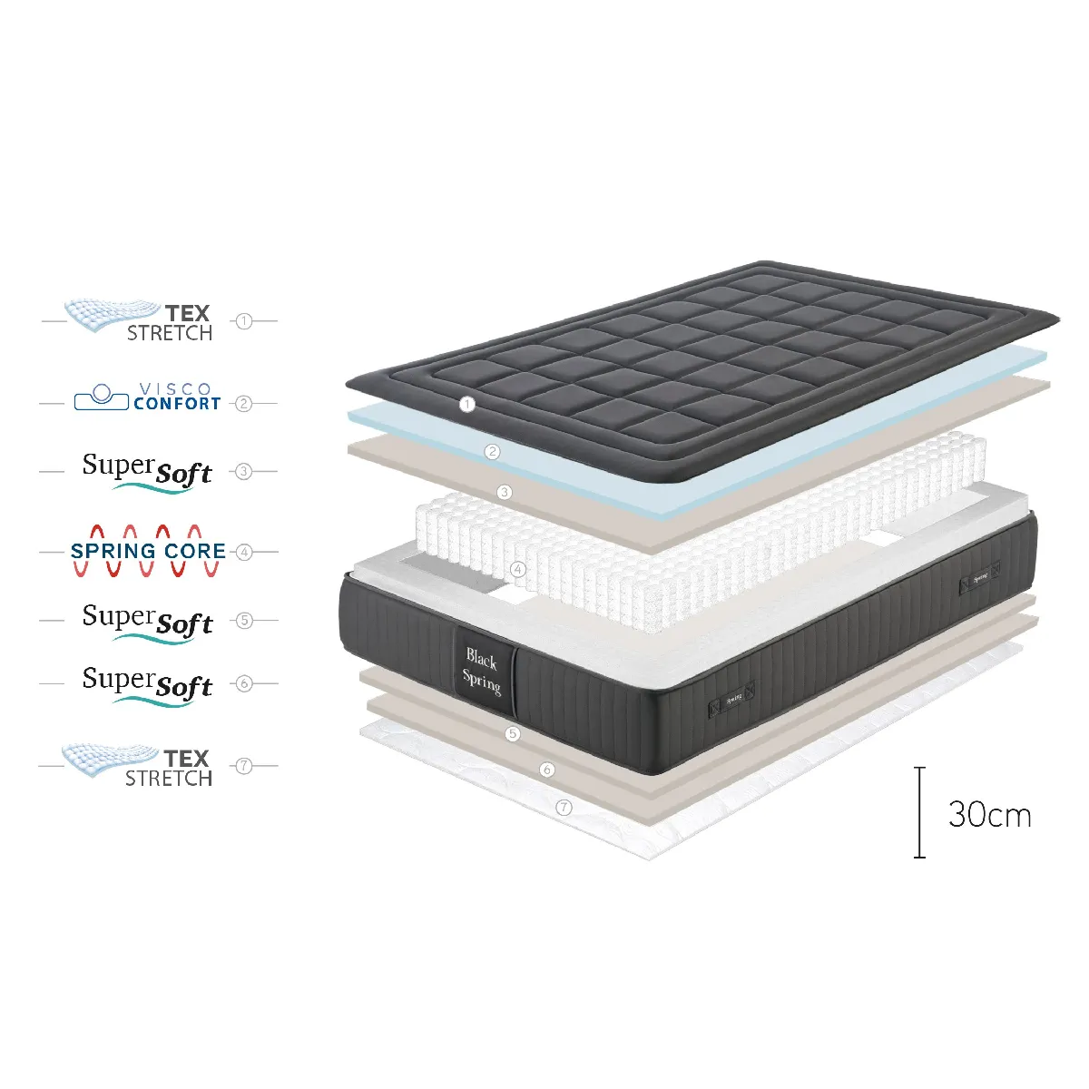Matelas Ressorts Ensachés Black Spring Royal, 30cm, 140x190cm - Moonia