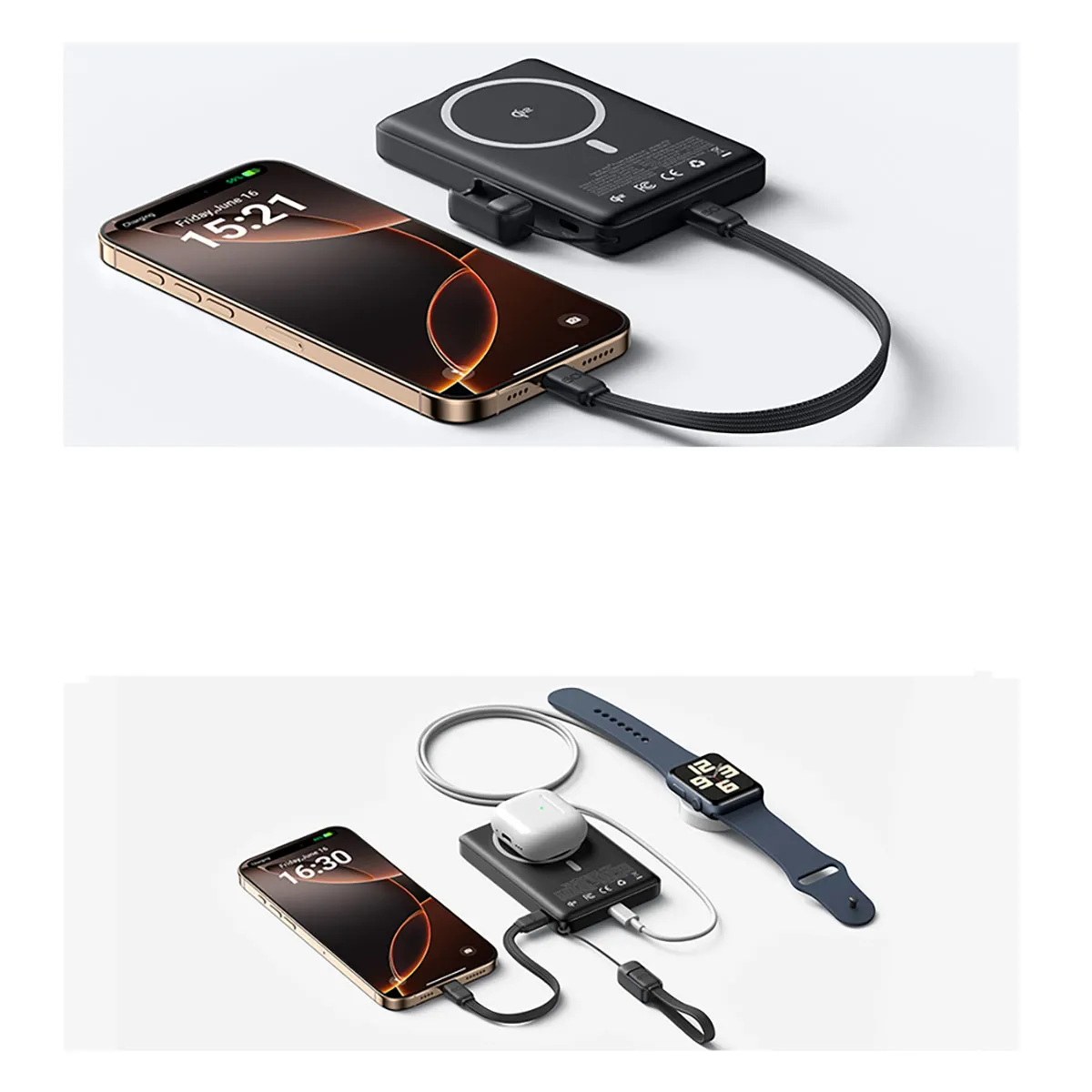Ce powerbank possède une puissance de 10000mAh avec ports USB-C et charge sans fil magnétique pour une recharge polyvalente