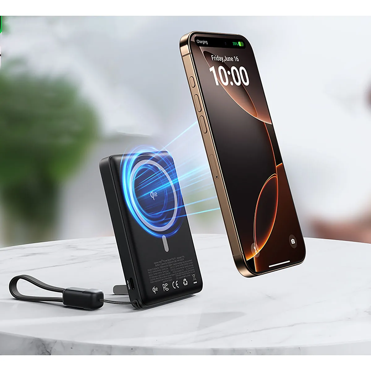 Powerbank sans fil Magnétique MagPro Slim 10000mAh 2 ports USB-C Noir Iniu
