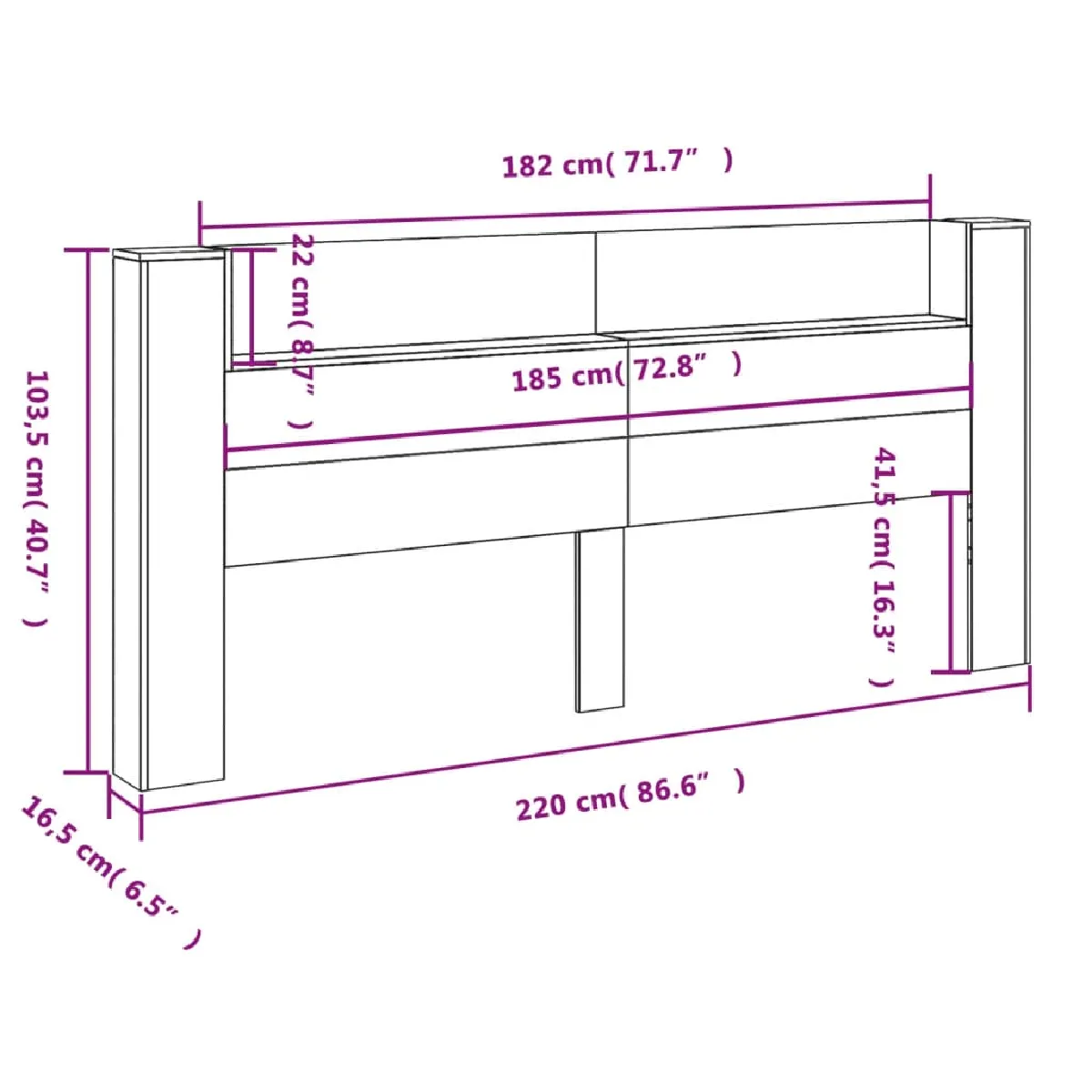 vidaXL Armoire tête de lit avec LED blanc 220x16,5x103,5 cm