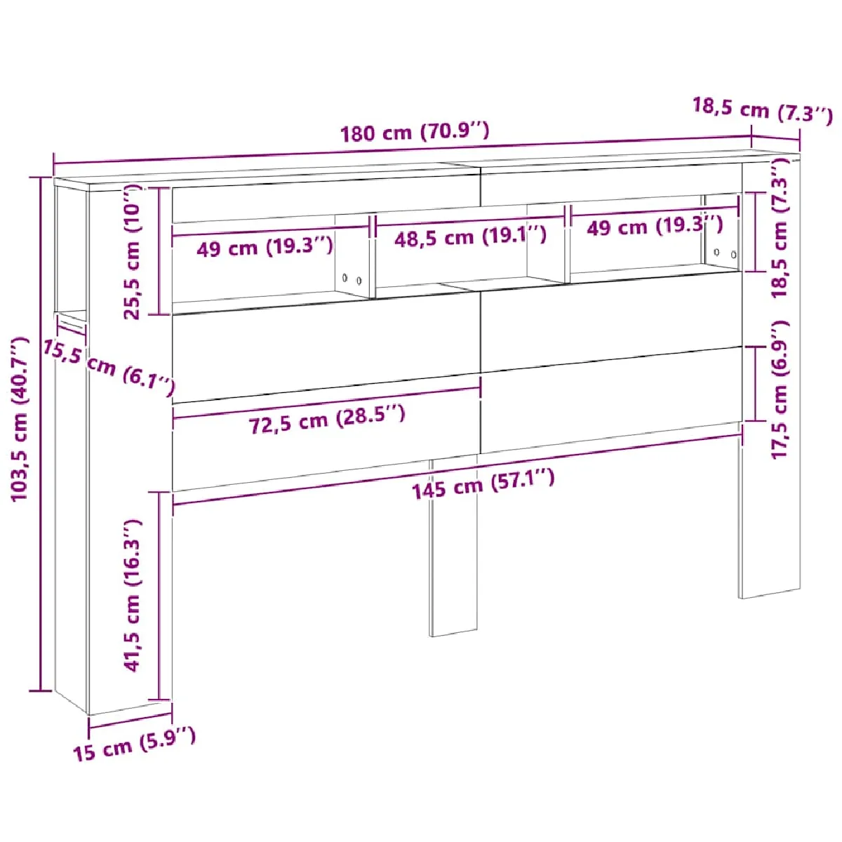 vidaXL Tête de lit à LED chêne sonoma 180x18,5x103,5cm bois ingénierie |