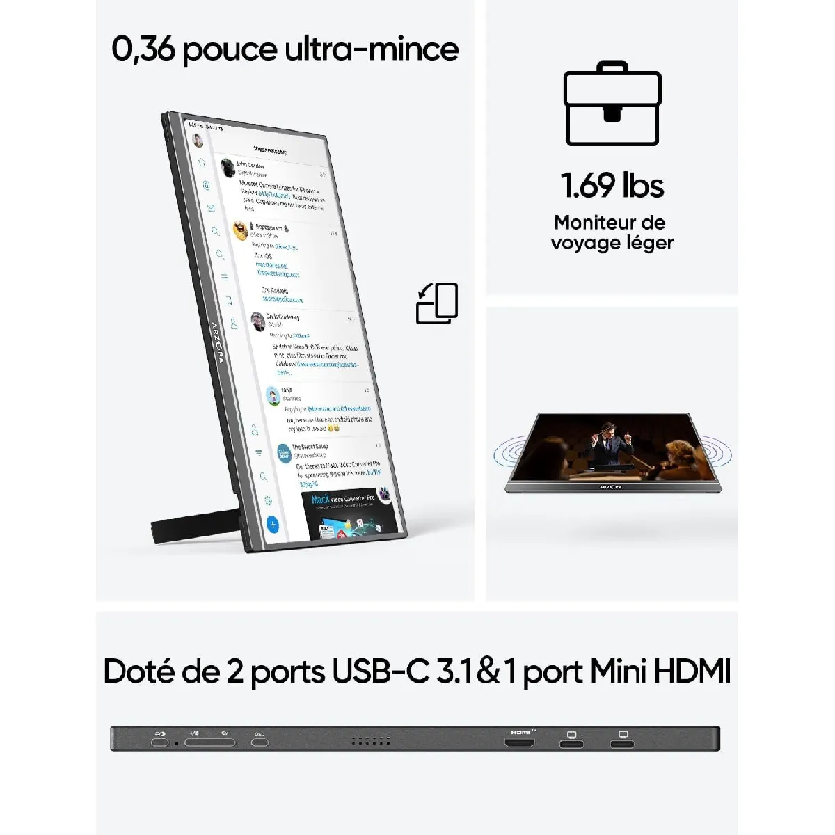 - Connectivité USBC et Mini HDMI