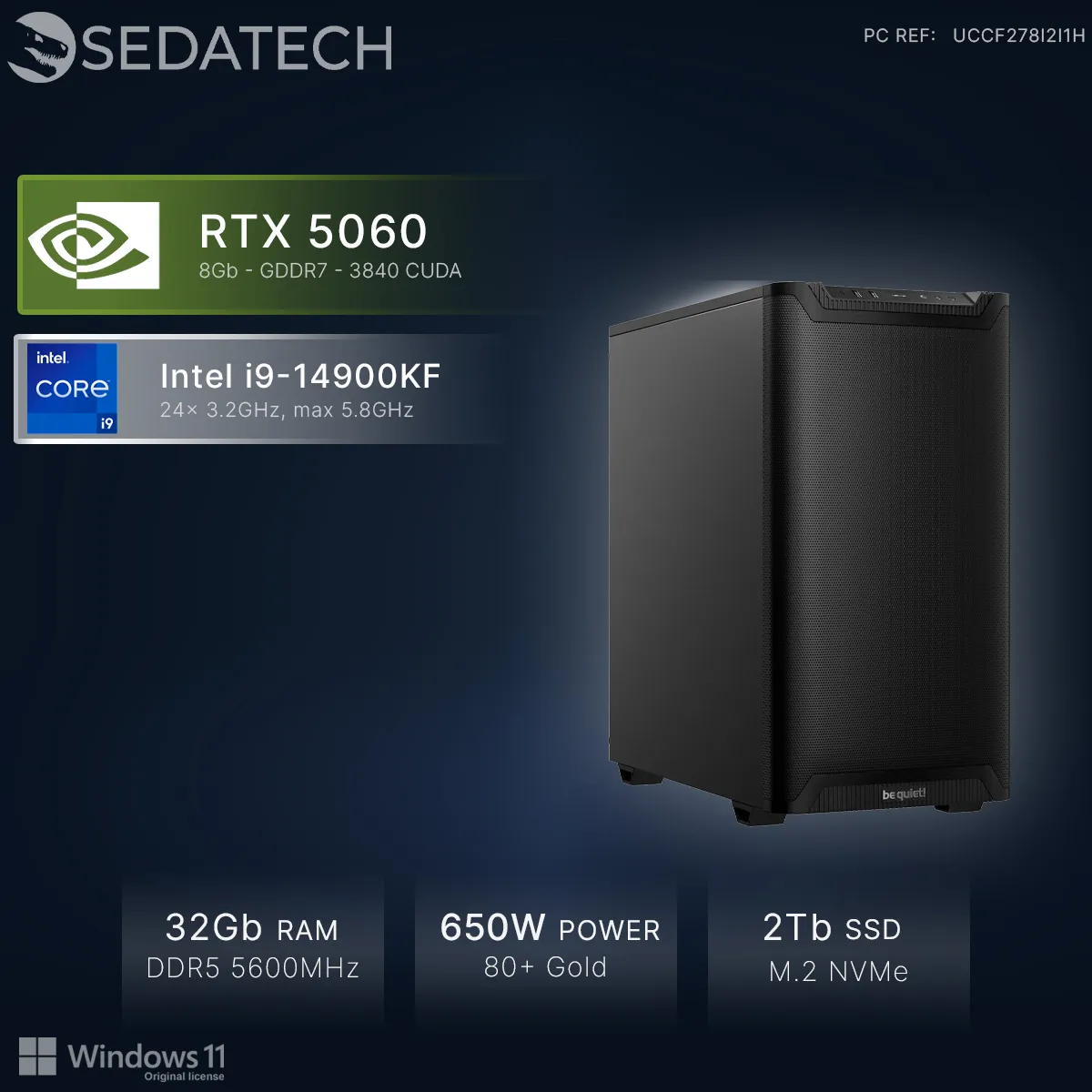 Sedatech PC Gamer Silent Quiet + Airflow • Intel i9-14900KF • RTX5060 • 32Go DDR5 • 2To SSD M.2 • Windows 11 |