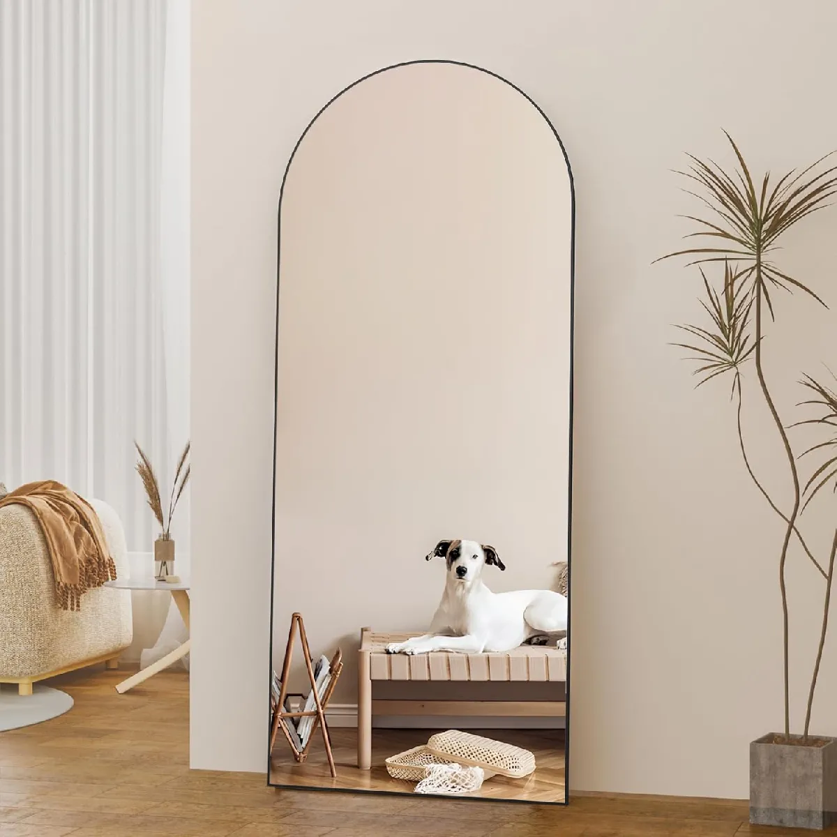 CASSILANDO Miroir pleine longueur 165 x 60 cm, miroir de sol avec cadre en aluminium, miroir sur pied arqué lisse, noir |