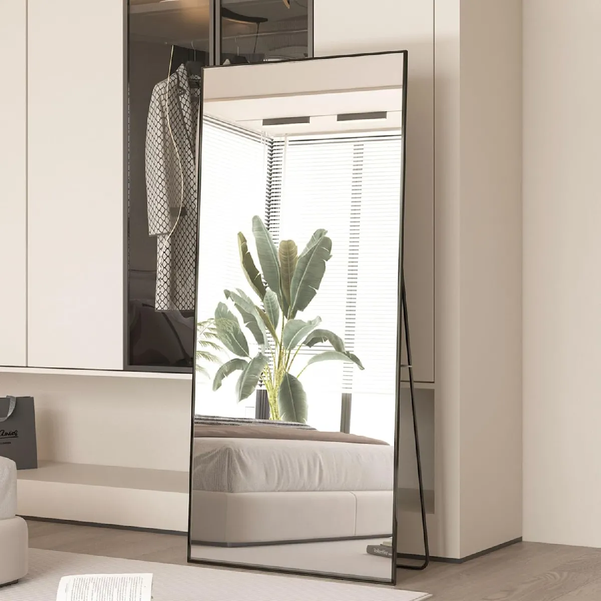 MIROIR DE SOL EN ALUMINIUM : Avec une longueur de 165 cm et une largeur de 60 cm, il est suffisamment grand pour vous donner une vue vraiment complète de tout votre corps, avec un style moderne et minimaliste qui s'adapte parfaitement à votre espace.