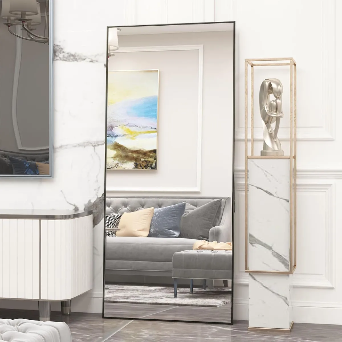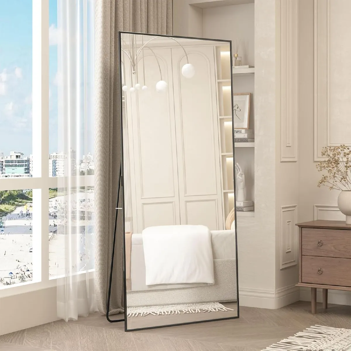 DESIGN CLASSIQUE : Le cadre fin en aluminium ajoute un sens du design au miroir pleine longueur, lui permettant de se fondre dans le décor et d'être la pièce décorative parfaite pour votre espace.