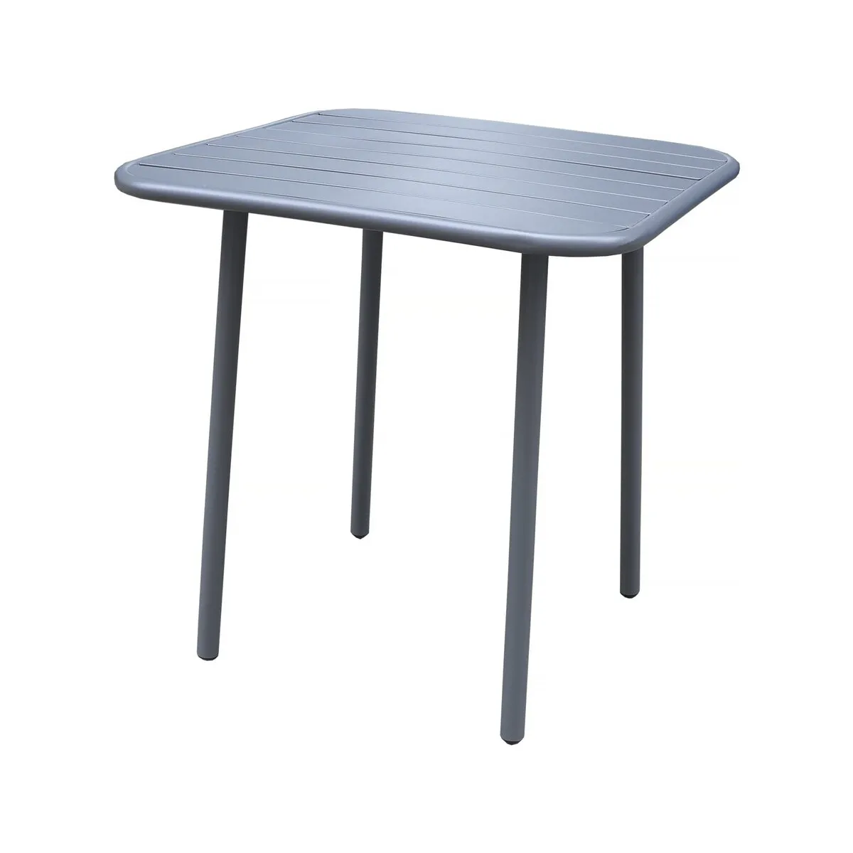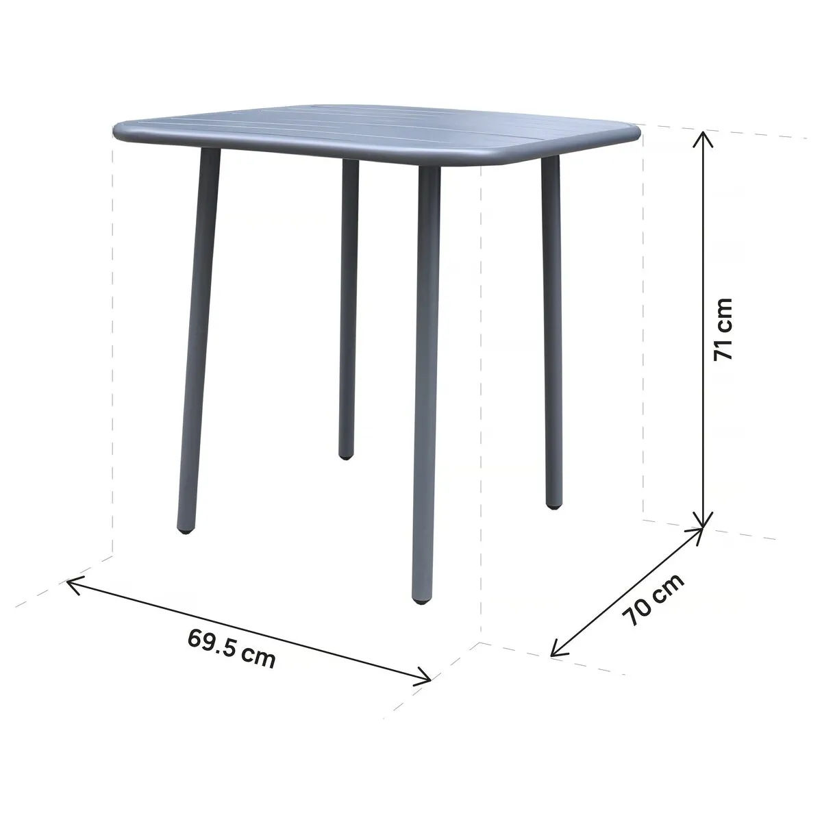 Table de jardin en métal "Bilbao" - 70 x 70 x 71 cm - GrisLa table de jardin "Bilbao" est parfaite pour créer un petit coin repas pratique en extérieur. Avec ses dimensions compactes, 70 x 70 x 71 cm, elle est idéale pour accueillir jusqu'à 2 personnes, ce qui en fait le choix parfait pour les petits espaces, les repas en tête-à-tête ou les moments de détente à deux.Son design épuré, souligné par des coins arrondis, combine simplicité et sécurité. Conçue en métal robuste, elle garantit une excellente stabilité et une résistance optimale aux intempéries, pour un usage extérieur durable.Son coloris gris s'intégre harmonieusement dans tous types d'environnements extérieurs : balcon, terrasse urbaine ou petit jardin. Compacte mais conviviale, la table "Bilbao" allie solidité, esthétique et praticité.Transformez facilement votre extérieur en un espace de détente et de partage grâce à la table "Bilbao", idéale pour profiter pleinement de chaque moment à deux, en plein air. Table d'extérieur "Bilbao" - 2 places - Dimensions : 70 x 70 x 71 cm - Forme : carré avec coins arrondis - Poids maximum supporté : 75 kg - Métal - Gris .Descriptif: Table d'extérieur Bilbao - 2 places - Dimensions : 70 x 70 x 71 cm - Forme : carré avec coins arrondis - Poids maximum supporté : 75 kg - Métal - Gris