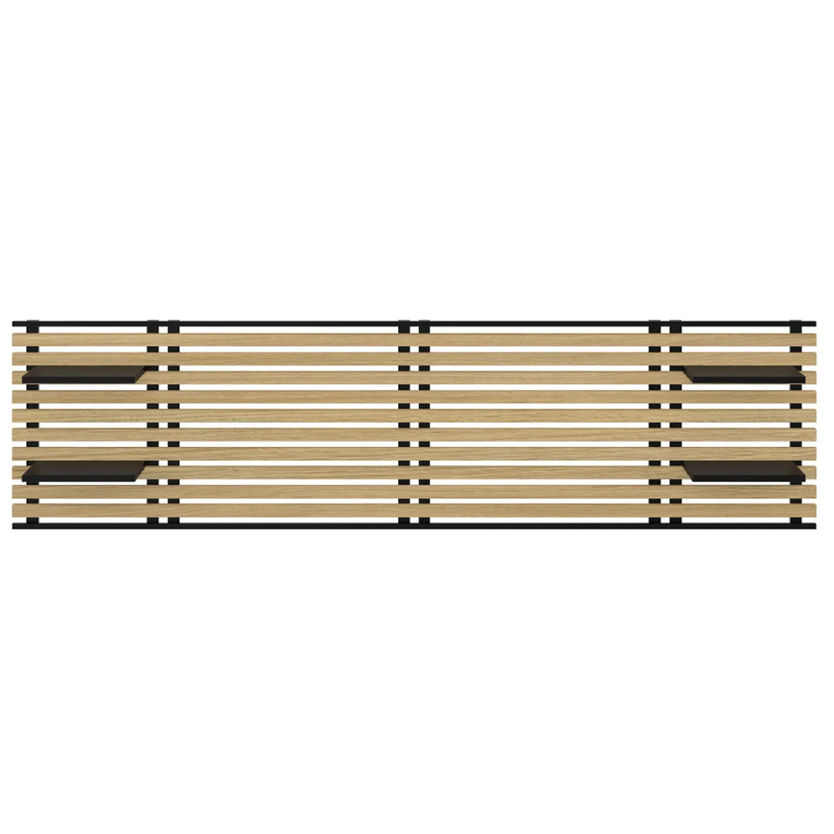 Tête de lit suspendue en lattes DETROIT 240 cm bois et métal noir avec étagères design industriel
