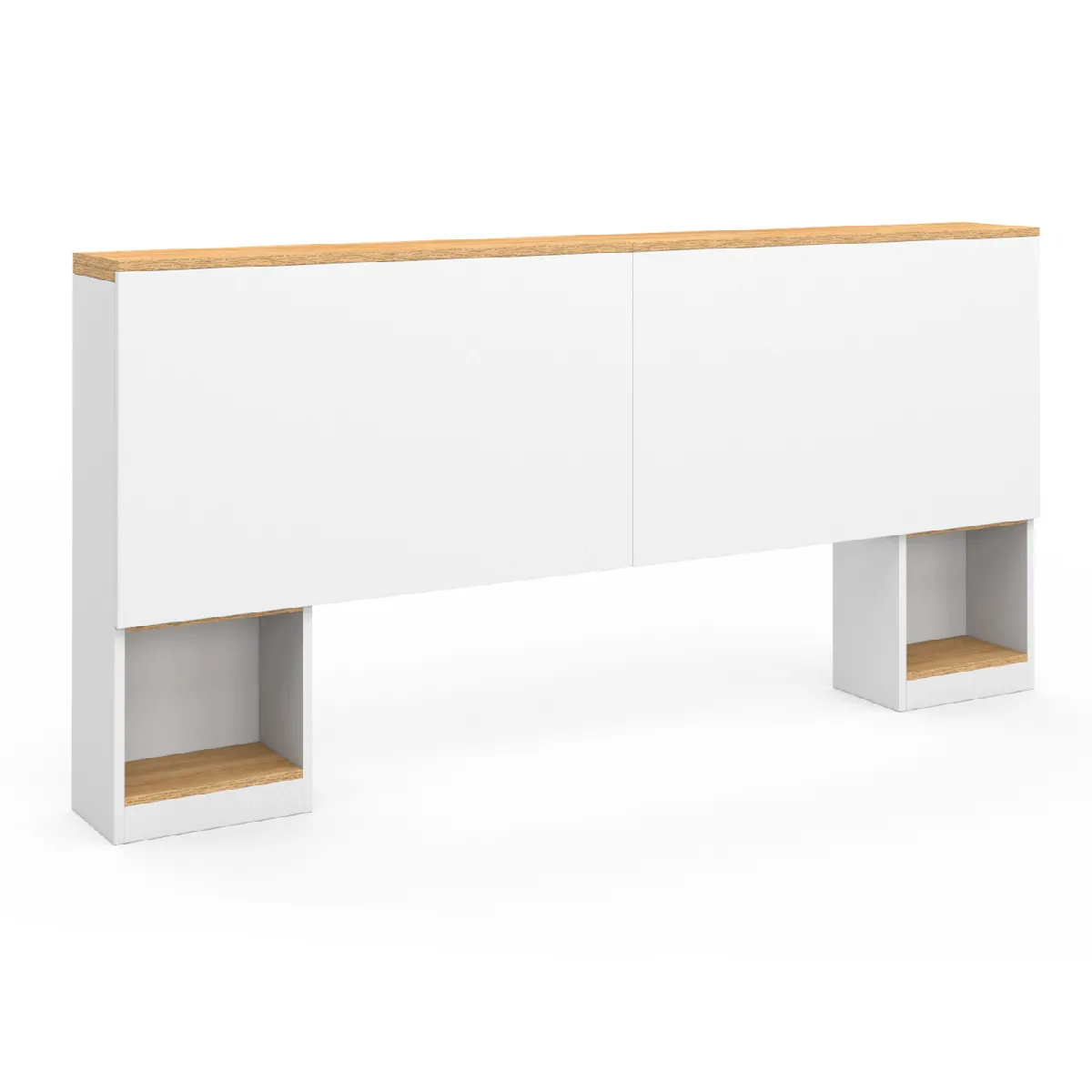 Tête de lit sur pied extensible avec chevets coulissants CATBA pour lit 140 et 160 cm blanc et façon bois