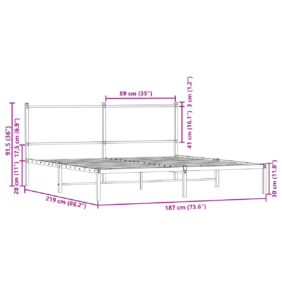 - Dimensions du matelas correspondant : 183 x 213 cm (l x L) (matelas non inclus)