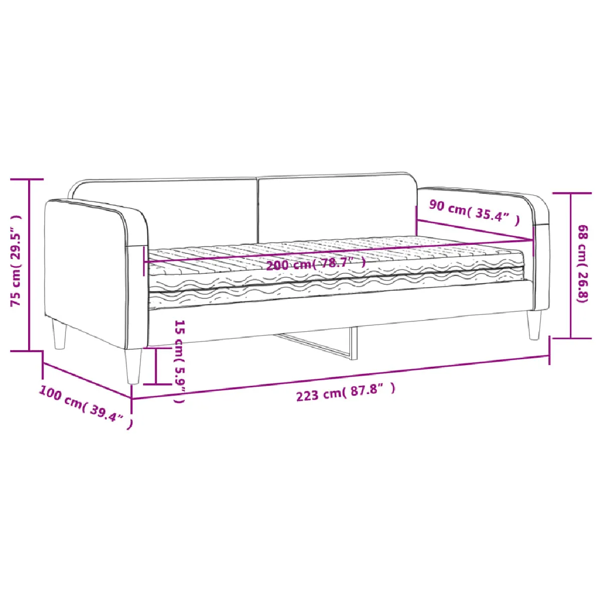 vidaXL Lit de jour avec matelas noir 90x200 cm tissu |