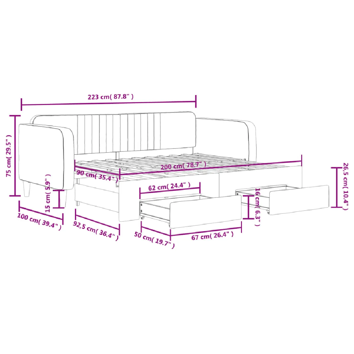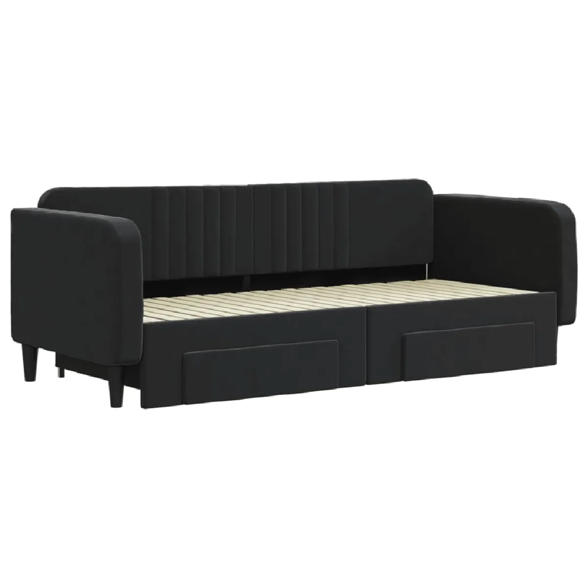 vidaXL Lit de jour avec gigogne et tiroirs sans matelas noir 90x200 cm