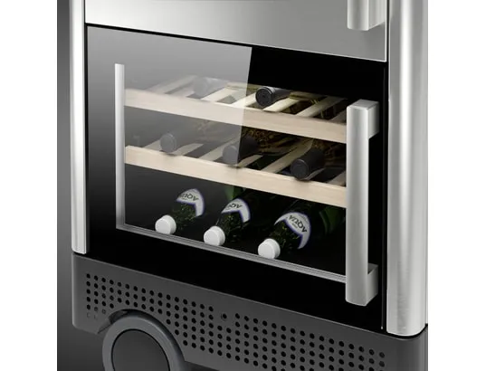 Le réfrigérateur accueille jusqu'à 19 bouteilles de Bordeaux 75 cl, organisées pour un service régulier des boissons.