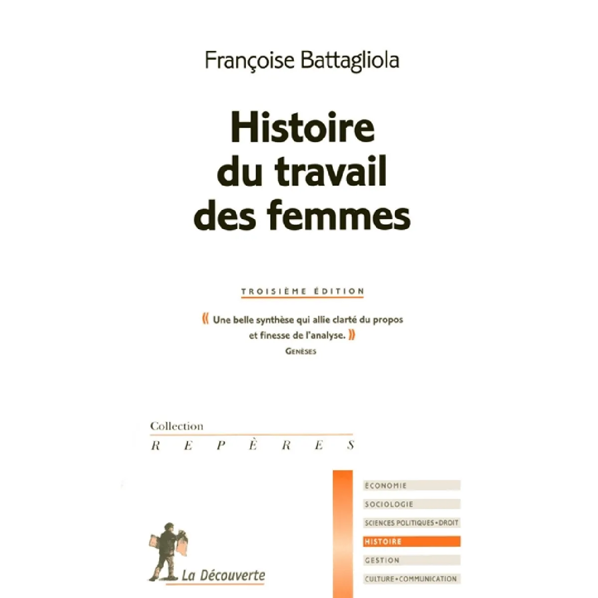 Quatrième de couverture : Histoire du travail des femmes (3e édition) Depuis la seconde moitié du XIXe siècle, le travail des femmes s'est exercé de plus en plus hors du cadre familial et le salariat est devenu une réalité. Grâce à la progression de la scolarité des jeunes filles, les femmes ont pénétré des secteurs et des professions jusqu'alors occupés par les hommes. Cette concurrence n'a pas manqué de soulever, de façon diverse selon les époques, controverses et ripostes. Aussi, tout en étendant ses champs d'action, l'activité féminine a été limitée dans ses ambitions et les frontières du masculin et du féminin ont été redéfinies. Plus particulièrement consacré à la France, ce livre interroge les paradoxes d'une histoire où l'activité professionnelle des femmes a toujours été particulièrement fréquente tout en étant marquée par les inégalités liées au genre, montrant à quel point cette histoire est inséparable de celle des rapports de domination des hommes sur les femmes.