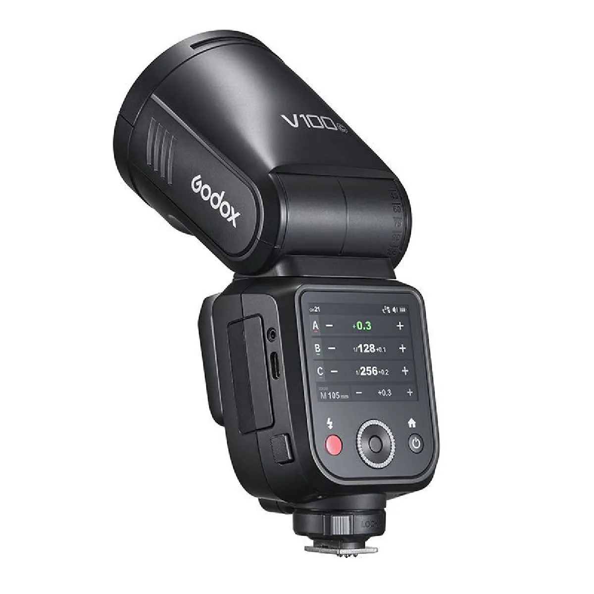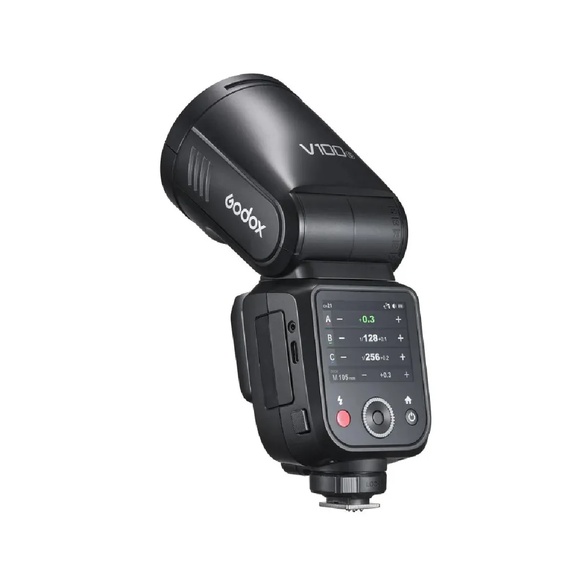 Alimenté par la même batterie que le V1 Pro, le flash V100 peut fournir jusqu'à 400 éclairs à pleine puissance, offrant une performance prolongée. Le port USB-C ajoute une commodité de chargement, et les batteries peuvent également être chargées avec le chargeur Godox VC26T (non fourni). De plus, le V100 dispose d'un port pour le module d'alimentation PB960 (non fourni), qui réduit le temps de recyclage à seulement 0,8 seconde lorsqu'il est connecté.