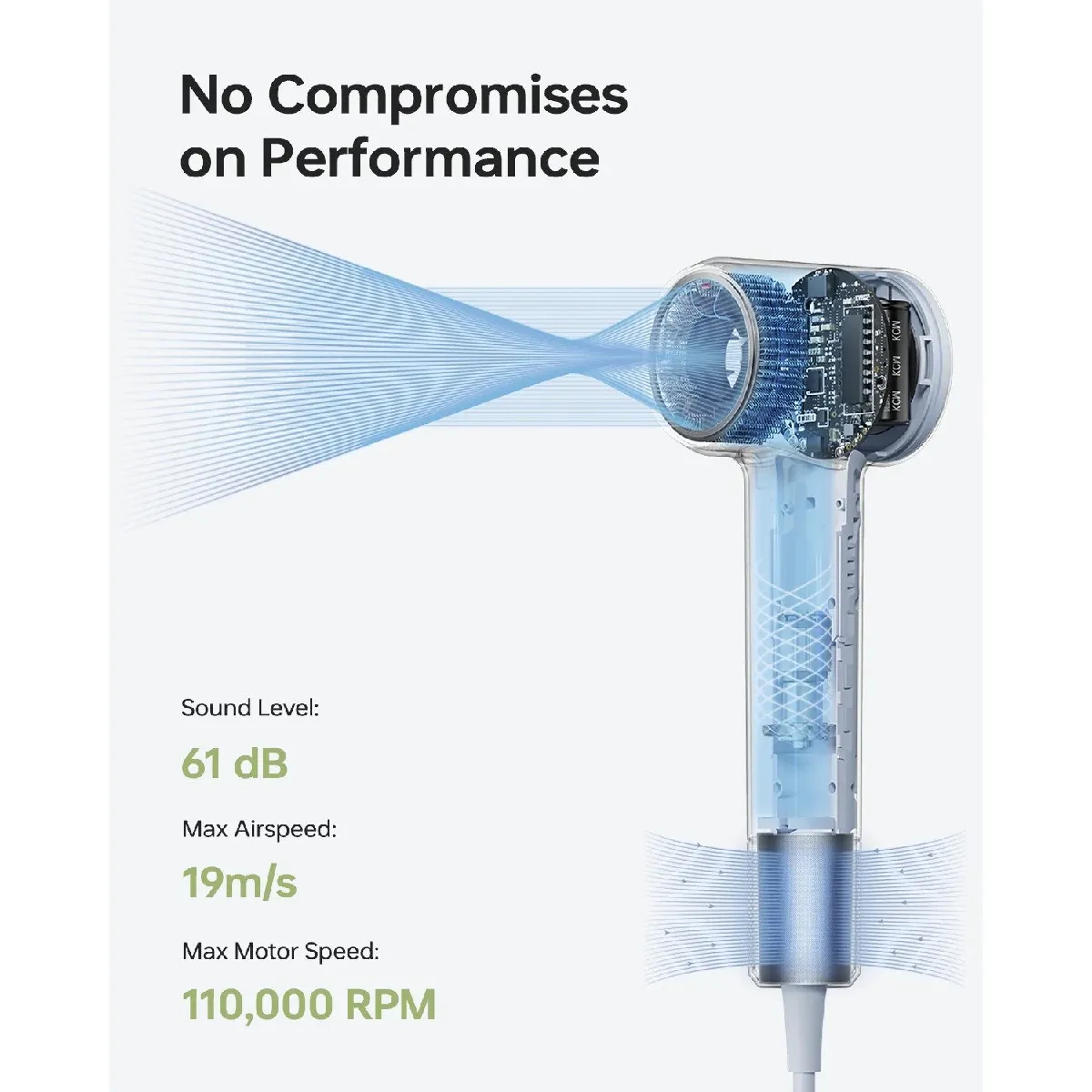 Sèche-cheveux de voyage ionique - Moteur brushless 110000 tr/min - 2 vitesses - 2 températures - Mode bébé - Contrôle intelligent de la température - Filaire