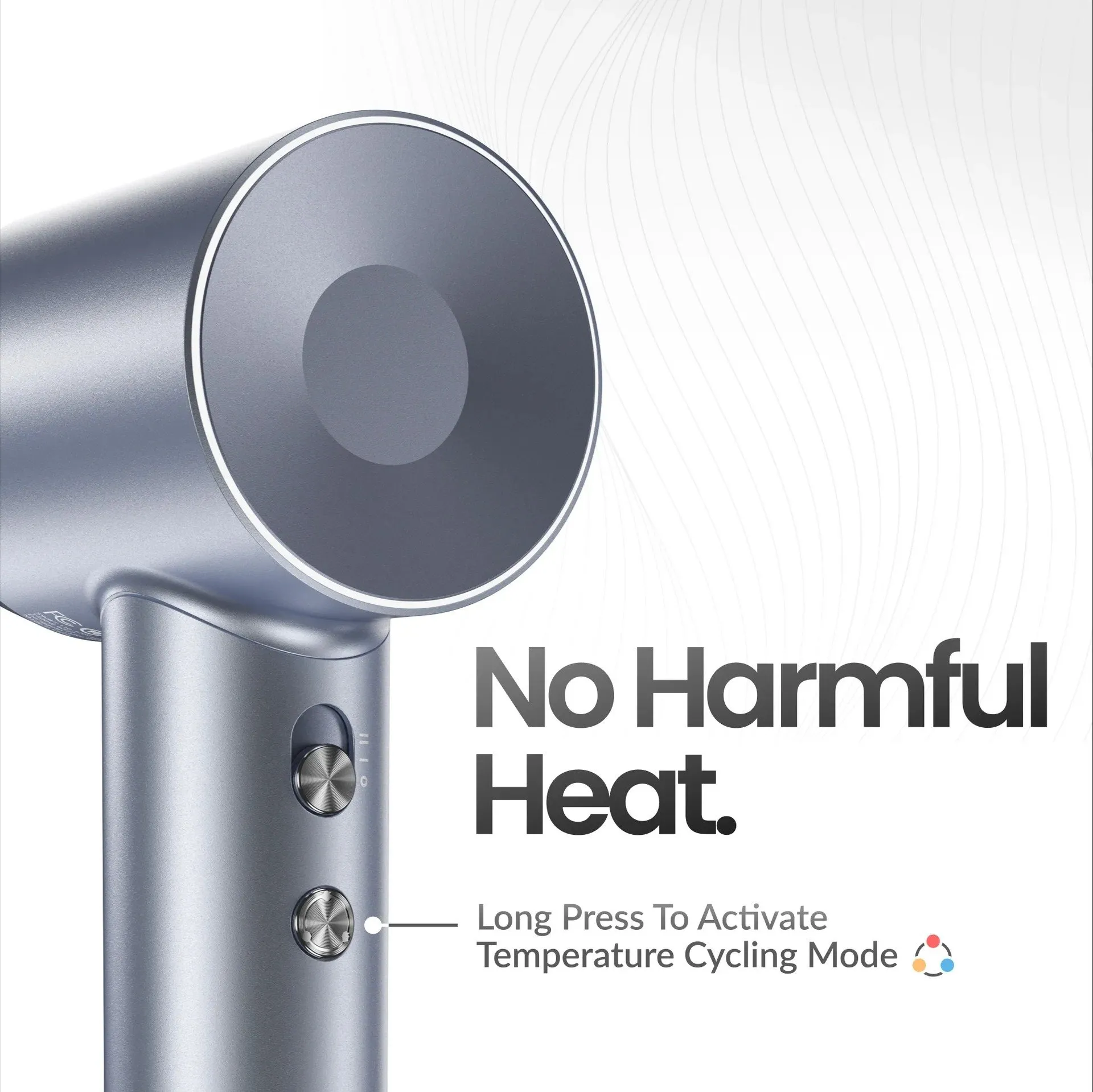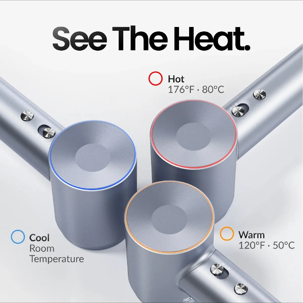 Le flux d'air puissant accélère le séchage tout en préservant la fibre capillaire grâce à une propulsion à 110 000 tr/min et un contrôle thermique réactif. Avec une vitesse d'air de 22 m/s, ce modèle réduit nettement le temps passé devant le miroir, sans surchauffe. L'anneau à DEL à 4 couleurs indique clairement la température utilisée, et le fonctionnement à faible bruit de 59 dB apporte un confort appréciable au quotidien. Léger et compact, il s'intègre facilement à une routine de soin régulière comme aux déplacements, tout en offrant un séchage précis et stable.