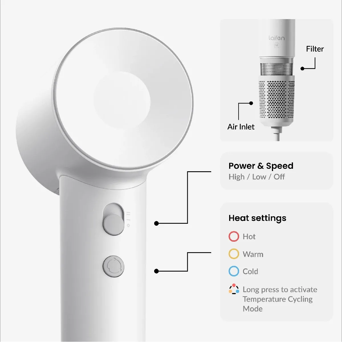 Sèche-cheveux Laifen SE 2 in 1 performance rapide et soin ionique
