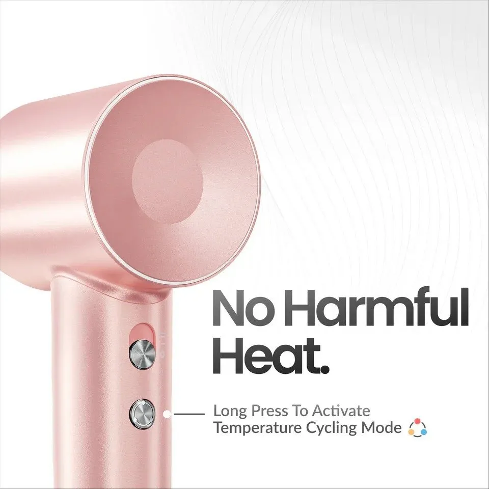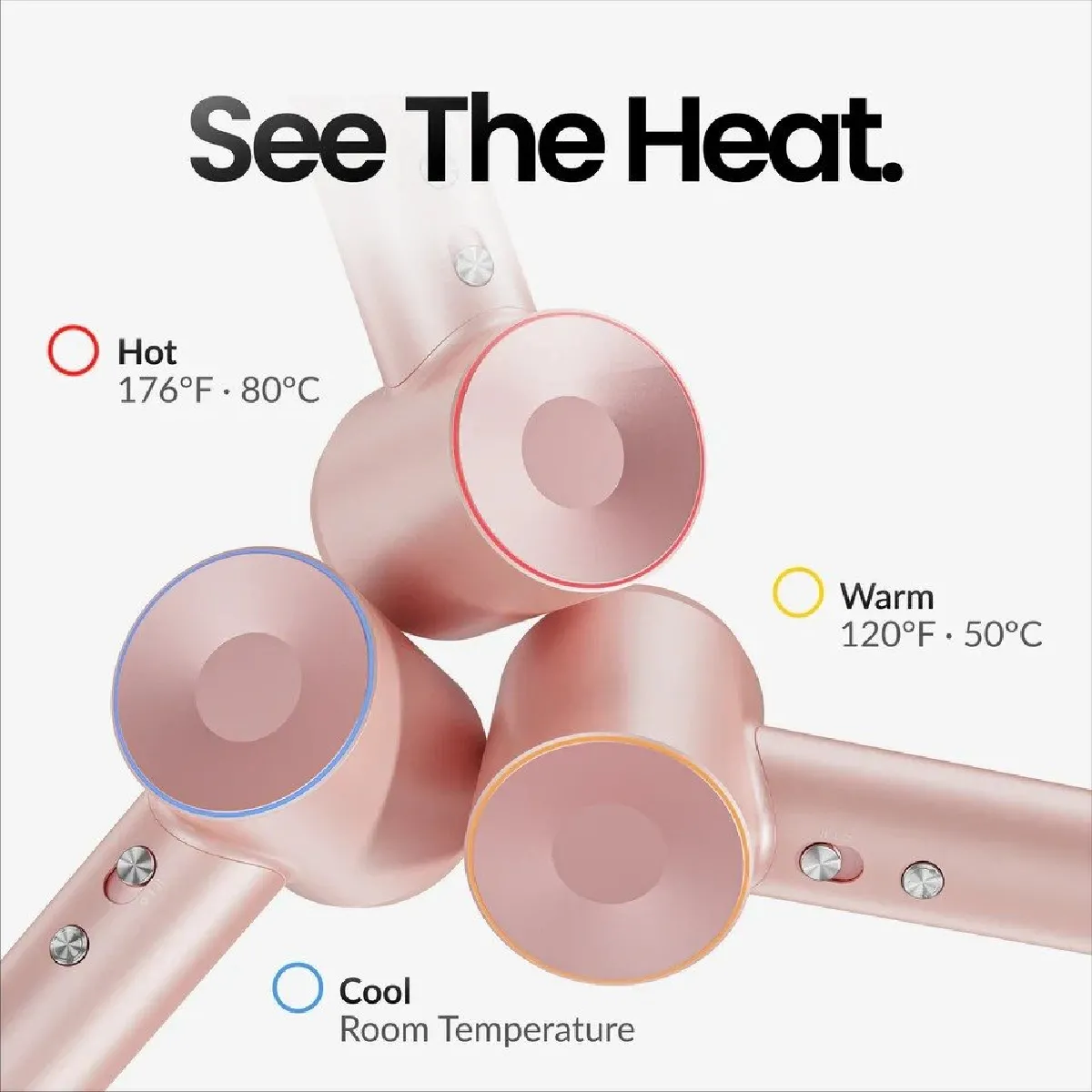 Le moteur sans balais offre un flux d'air concentré et stable à 22 m/s pour réduire nettement le temps de séchage. Cette dynamique permet de répartir la chaleur de façon homogène sur les mèches, utile pour les cheveux épais comme fins. Grâce au contrôle thermique surveillant la température 100 fois par seconde, l'appareil compense toute hausse excessive et maintient une diffusion constante. L'anneau à DEL indique clairement le niveau : rouge pour air chaud à 176,0 °F, jaune pour air tiède à 122,0 °F, bleu pour air froid, afin d'adapter la finition selon la coiffure visée.