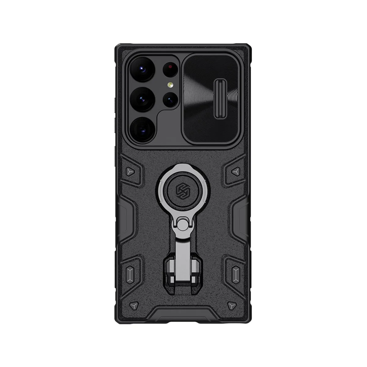 Offrez à votre Samsung Galaxy S23 Ultra une protection inégalée avec cette coque modèle CamShield Armor Pro de Nillkin. Conçue pour une utilisation active, elle combine protection extrême, sécurité des lentilles et portabilité grâce à son système d'attache. Son cache coulissant protège l'objectif photo, tandis que l'anneau intégré facilite la prise en main ou se transforme en support pour visionner vos contenus.