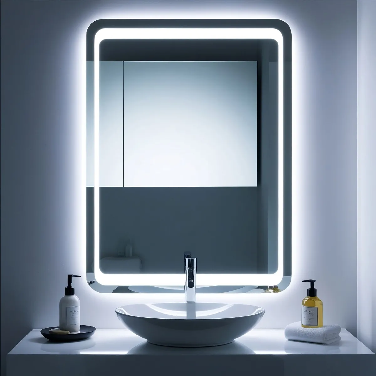 Miroir recrangulaire pour salle de bain 100x70 antibuée avec éclairage LED. Une solution élégante et fonctionnelle pour sublimer votre salle de bain.