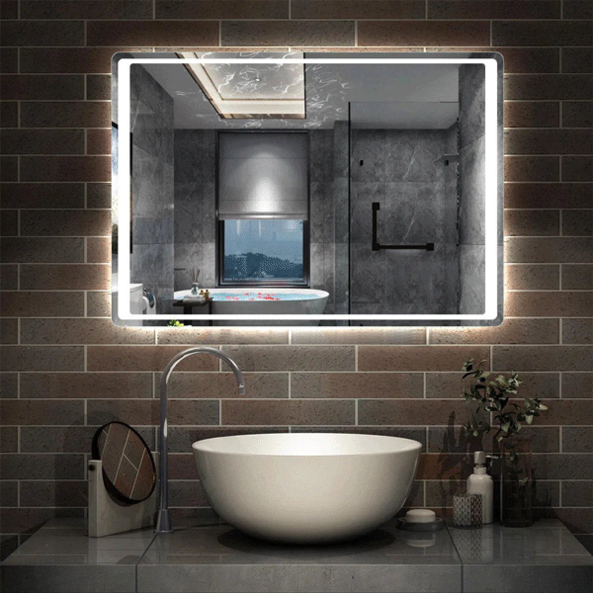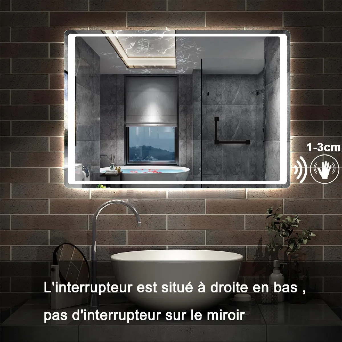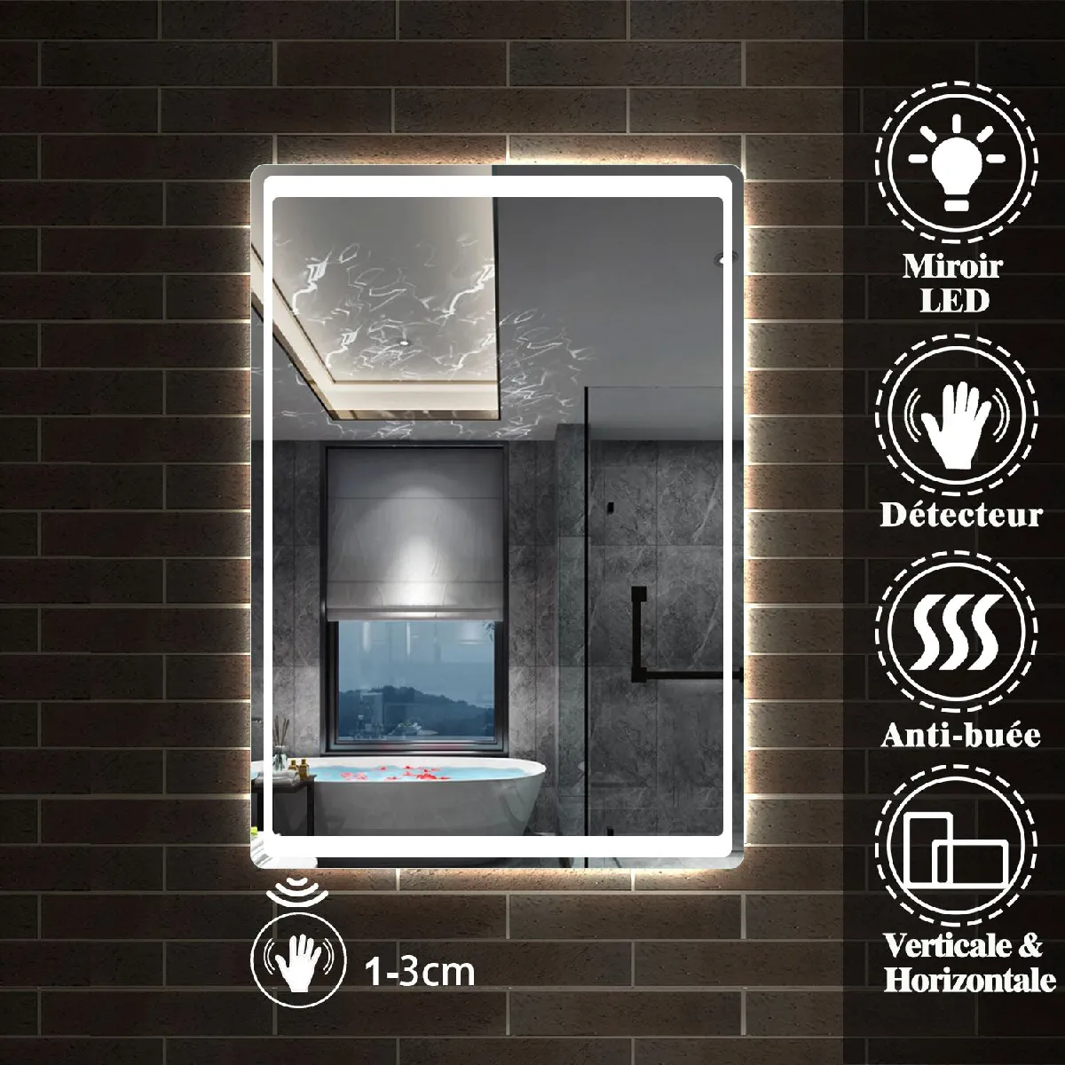Miroir recrangulaire pour salle de bain 100x70 antibuée avec éclairage LED. Ce miroir allie élégance, technologie moderne et confort avec éclairage LED, fonctionnalités intelligentes et finitions soignées.