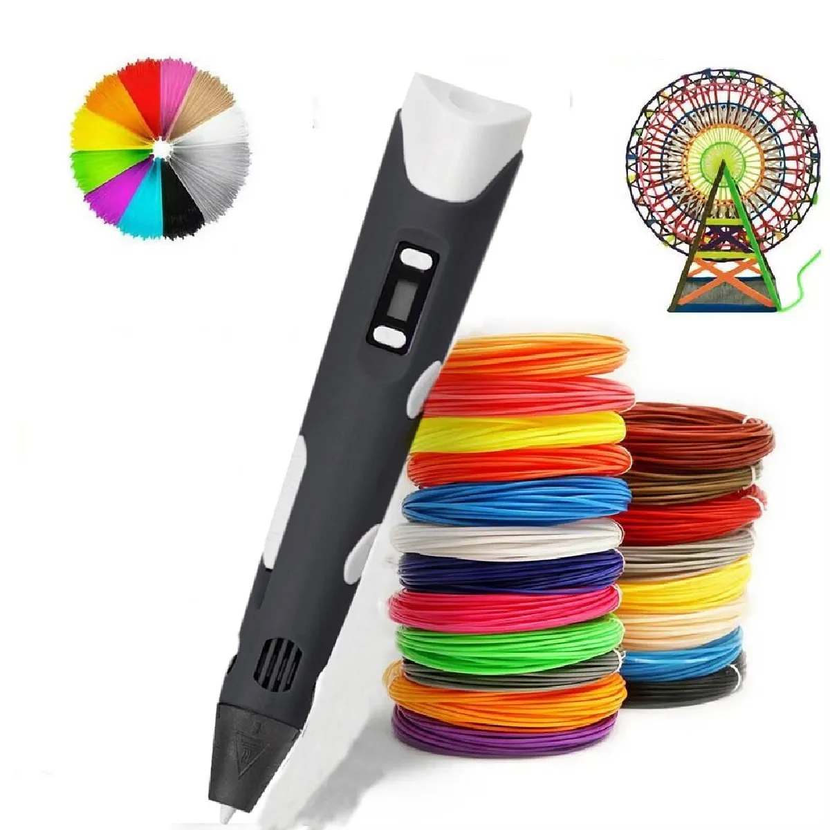 Stylo d'impression 3D, stylo à dessin 3D avec écran ACL, stylo graffiti 3D, filament PLA 1,75 mm, cadeaux créatifs pour les amateurs de graffiti, de loisirs créatifs et de bricolage. Stimulez la créativité des enfants et des adolescents.