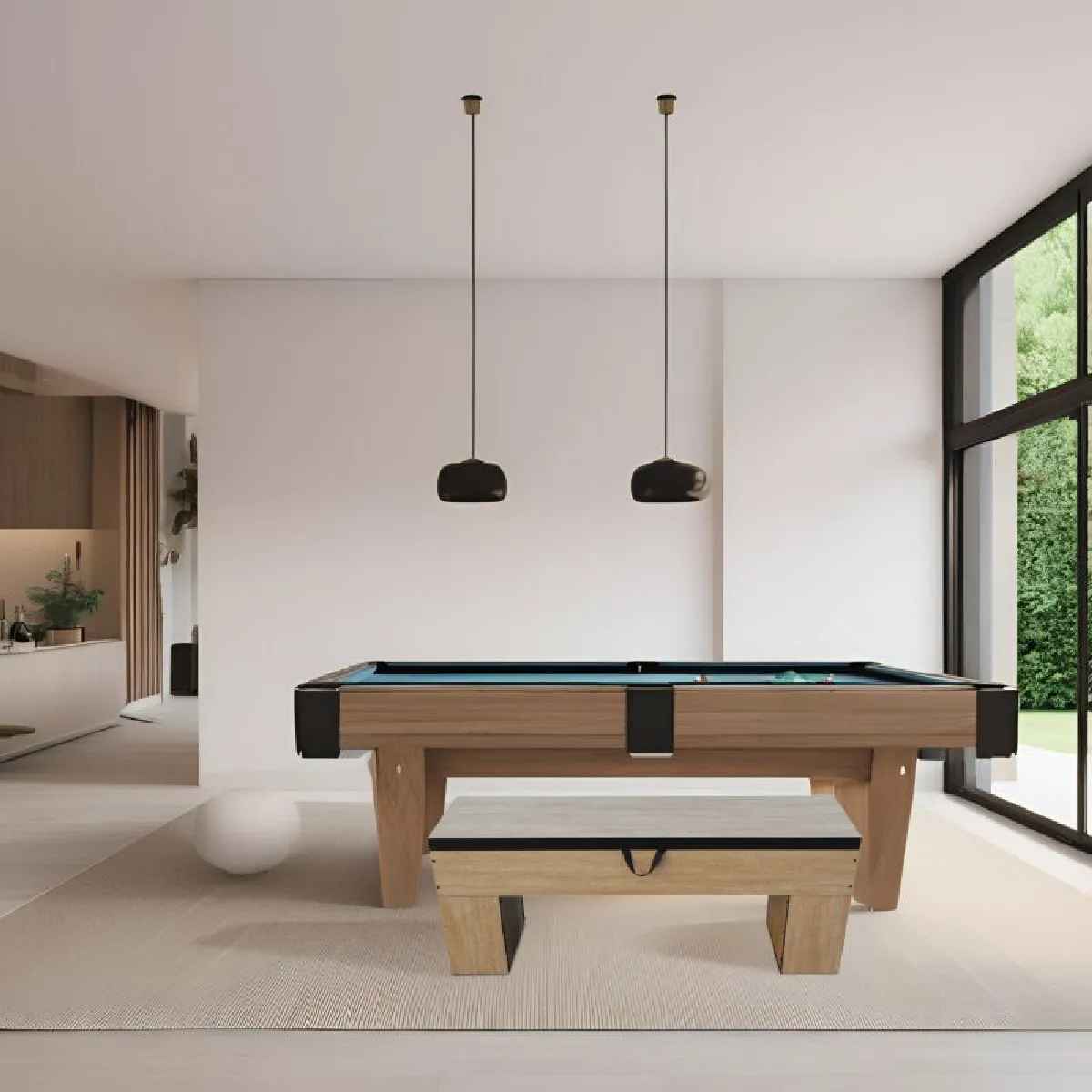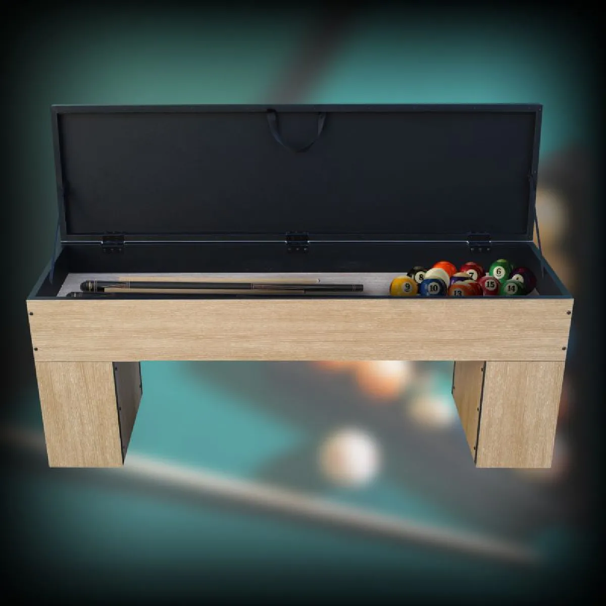 La structure pensée pour deux personnes permet d'asseoir des convives lors d'un dîner ou des spectateurs pendant une partie. Le banc accompagne une table de billard convertible en apportant une solution d'assise et de rangement coordonnée sans multiplier les meubles. Sa finition beige en PVC se nettoie aisément et répond à un usage fréquent. L'ensemble privilégie la fonctionnalité au quotidien avec un meuble compact qui simplifie l'aménagement d'un espace modulable.