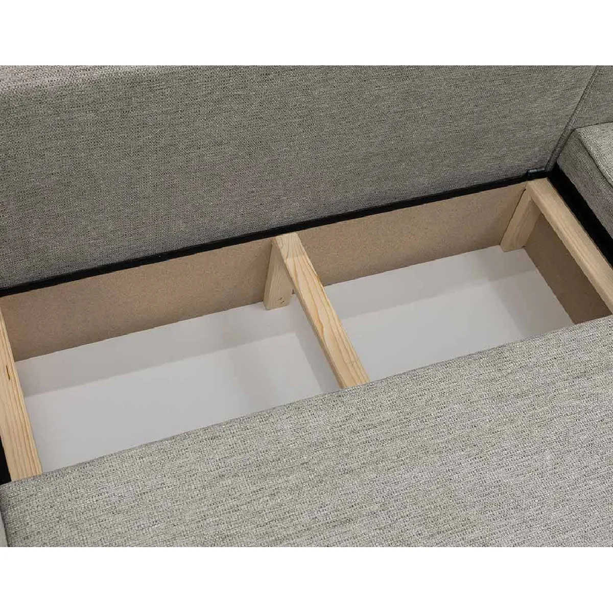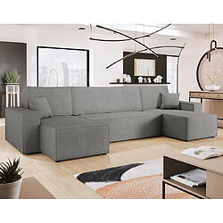 Cezanne - Canapé panoramique en U 7 places convertible avec coffre en tissu texturé - Gris clair