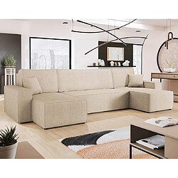 Bestmobilier Cezanne - Canapé panoramique en U 7 places convertible avec coffre en tissu texturé