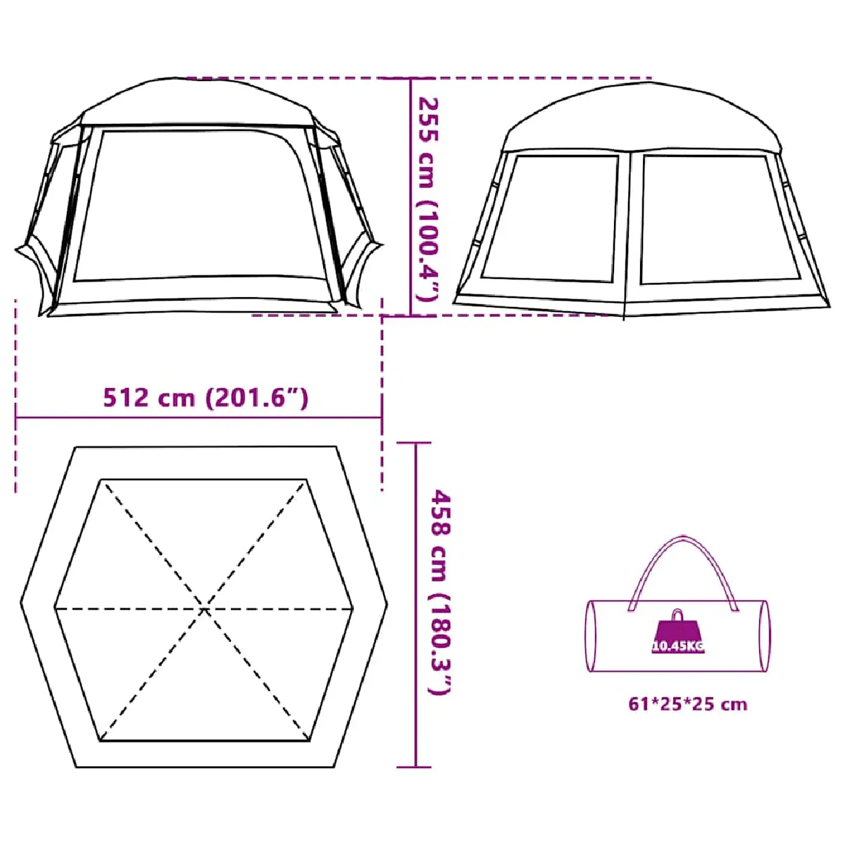 - Dimensions totales : 512 x 458 x 255 cm (L x l x H)
