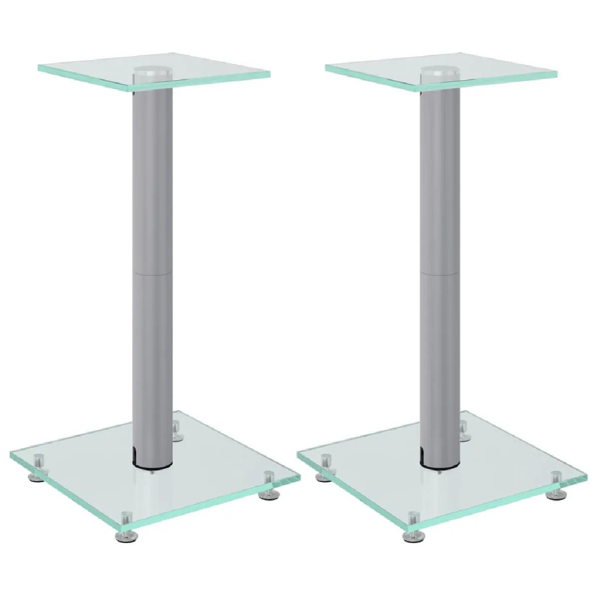 vidaXL Supports de haut-parleurs 2 pcs argenté verre trempé 1 pilier