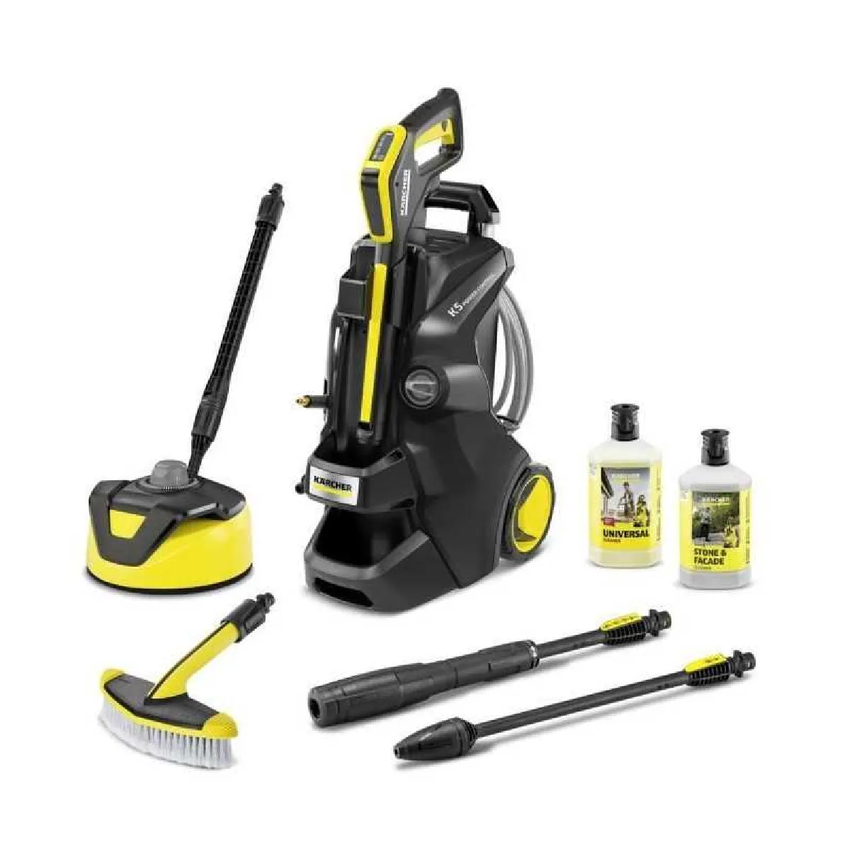 - Accessoires inclus : T5 surface cleaner, WB 60 brosse à main détachable, bouteille mousse/produit et deux bouteilles de détergent (Universal et Stone & Facade).