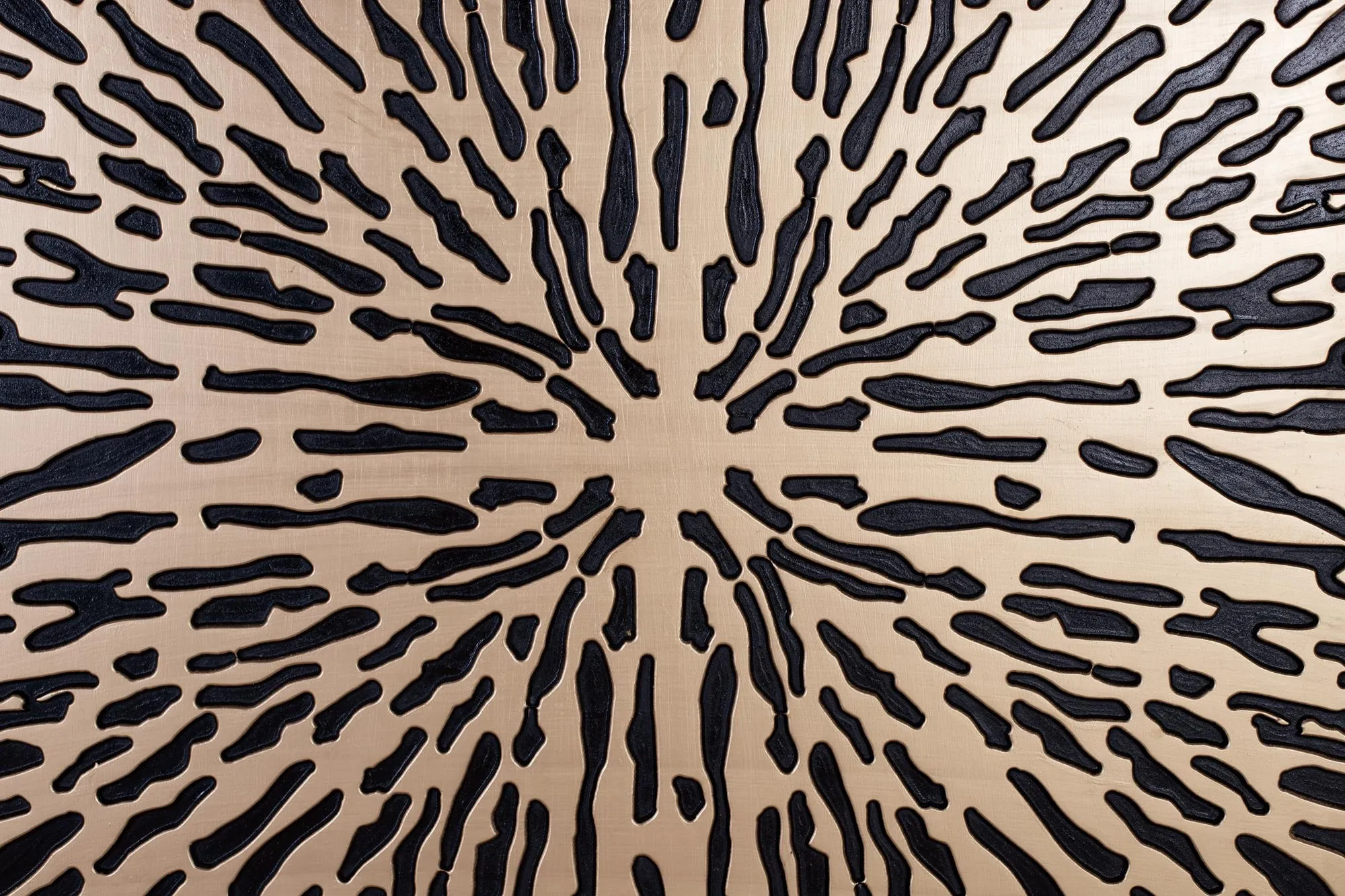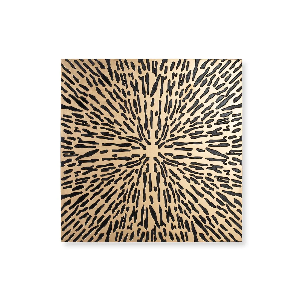 Le contraste entre les teintes dorées et noires crée une signature visuelle sobre et graphique, idéale pour structurer le mur derrière le lit. Avec ses 120 cm de hauteur pour environ 120 cm de longueur et 3 cm d'épaisseur, la pièce apporte une surface décorative harmonieuse qui s'accorde aux cadres de lit de 160. Le poids de 12 kg participe à une bonne tenue contre le mur tout en restant maniable pour l'installation.