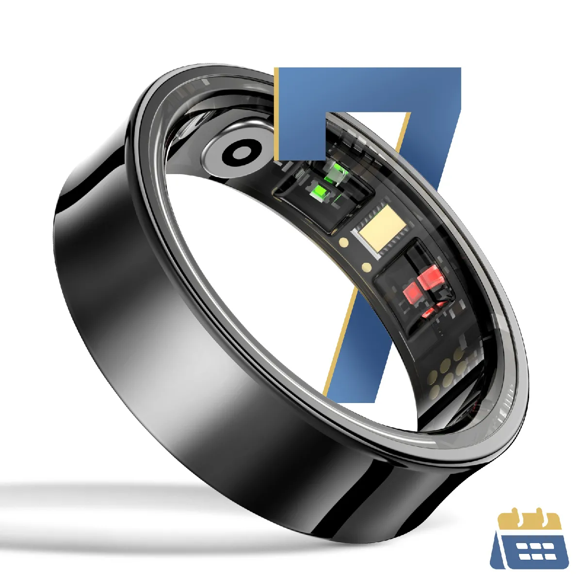 Bague connectée Taille 60. Cardio, SpO2, sommeil, sport. Recharge via boitier USB-C ou câble magnétique direct. Étanche 5ATM. Autonomie 5 à 7 jours. Acier inoxydable. Bluetooth 5.2. Application QRing. Compatible Android et iOS.