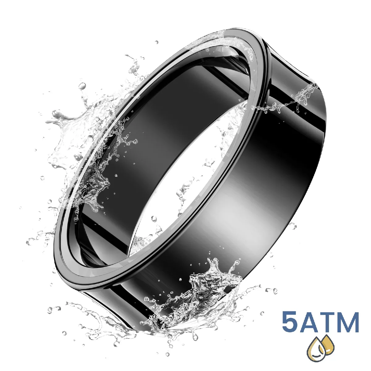 Bague connectée Taille 60 en acier inoxydable Noir, élégante et confortable