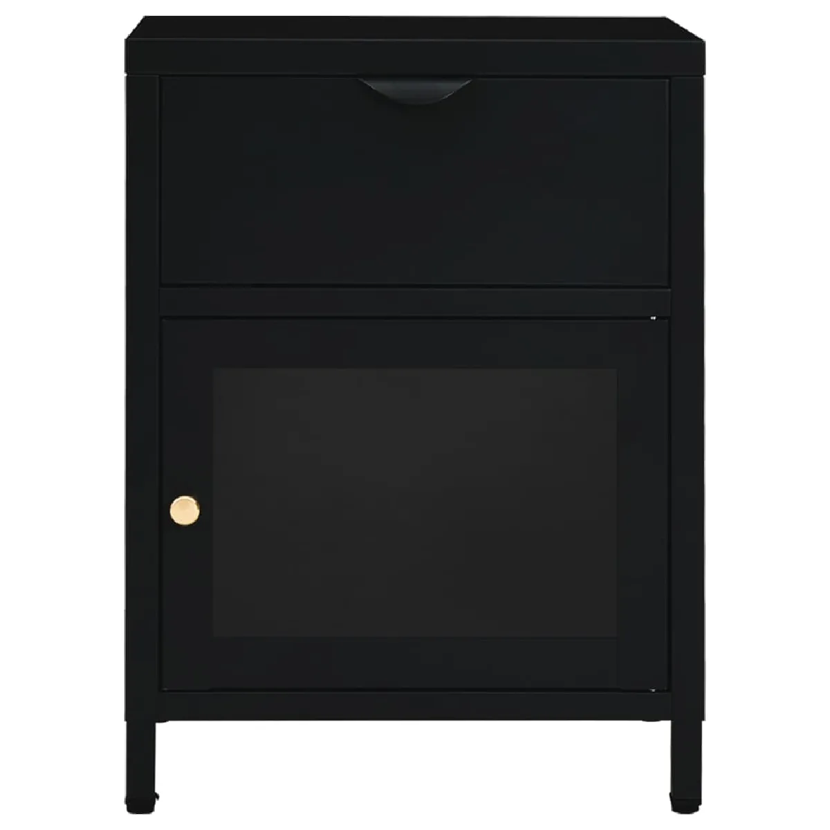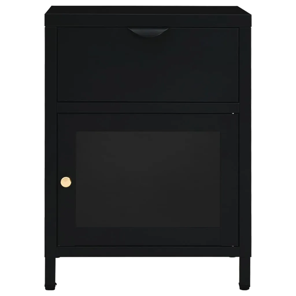 Table de chevet en acier et verre trempé, 1 tiroir Noir