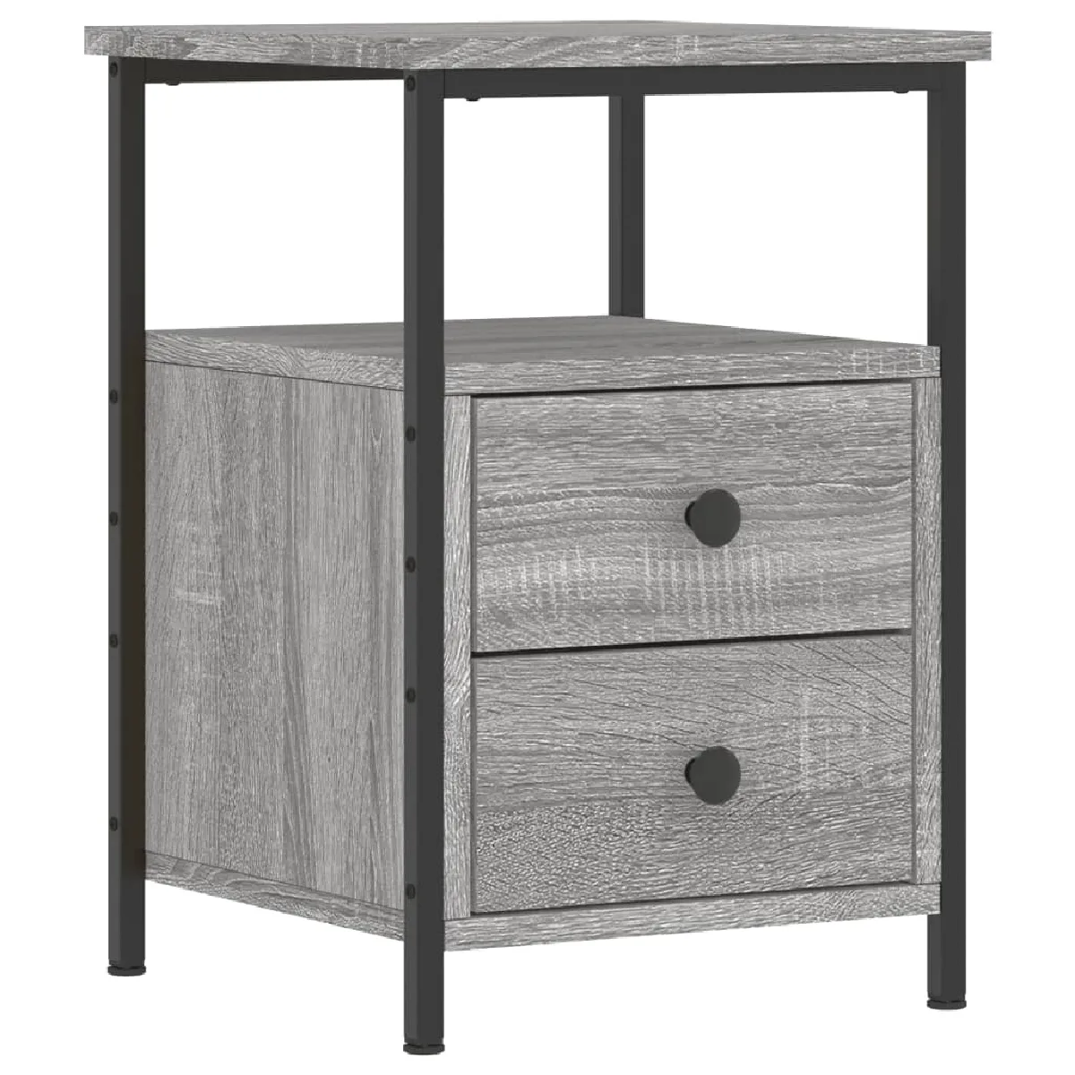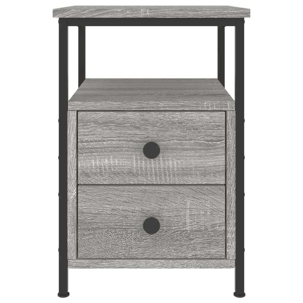 Table de chevet 2 tiroirs en bois d'ingénierie et métal Gris