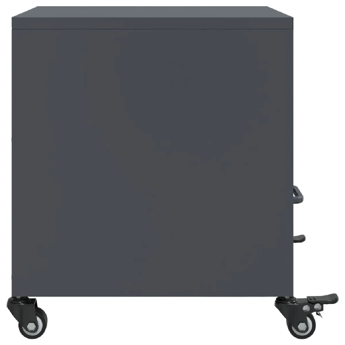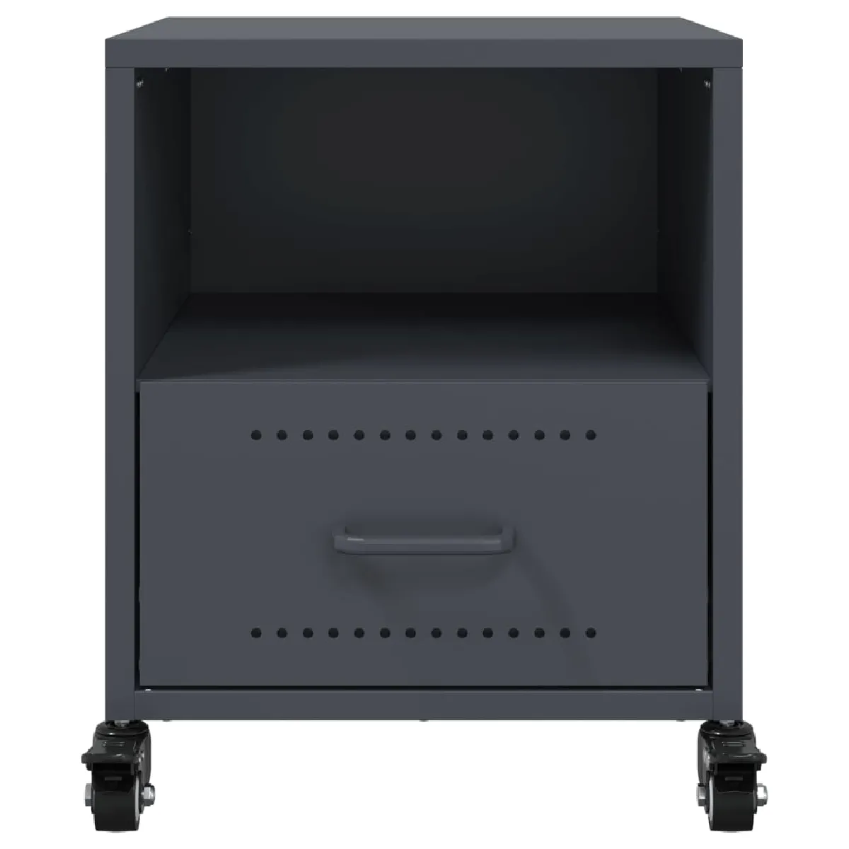 Le cadre en acier laminé à froid, résistant et précis, garantit une stabilité adaptée à un usage quotidien. Ses dimensions de 36 x 39 x 43,5 cm optimisent l'emprise au sol tout en offrant un volume utile bien réparti entre tiroir et niche. La poignée intégrée facilite l'ouverture et la fermeture, pour un accès rapide aux petits objets. La surface lisse se nettoie simplement avec un chiffon humide, limitant l'entretien au minimum et préservant l'aspect sobre de la finition anthracite.