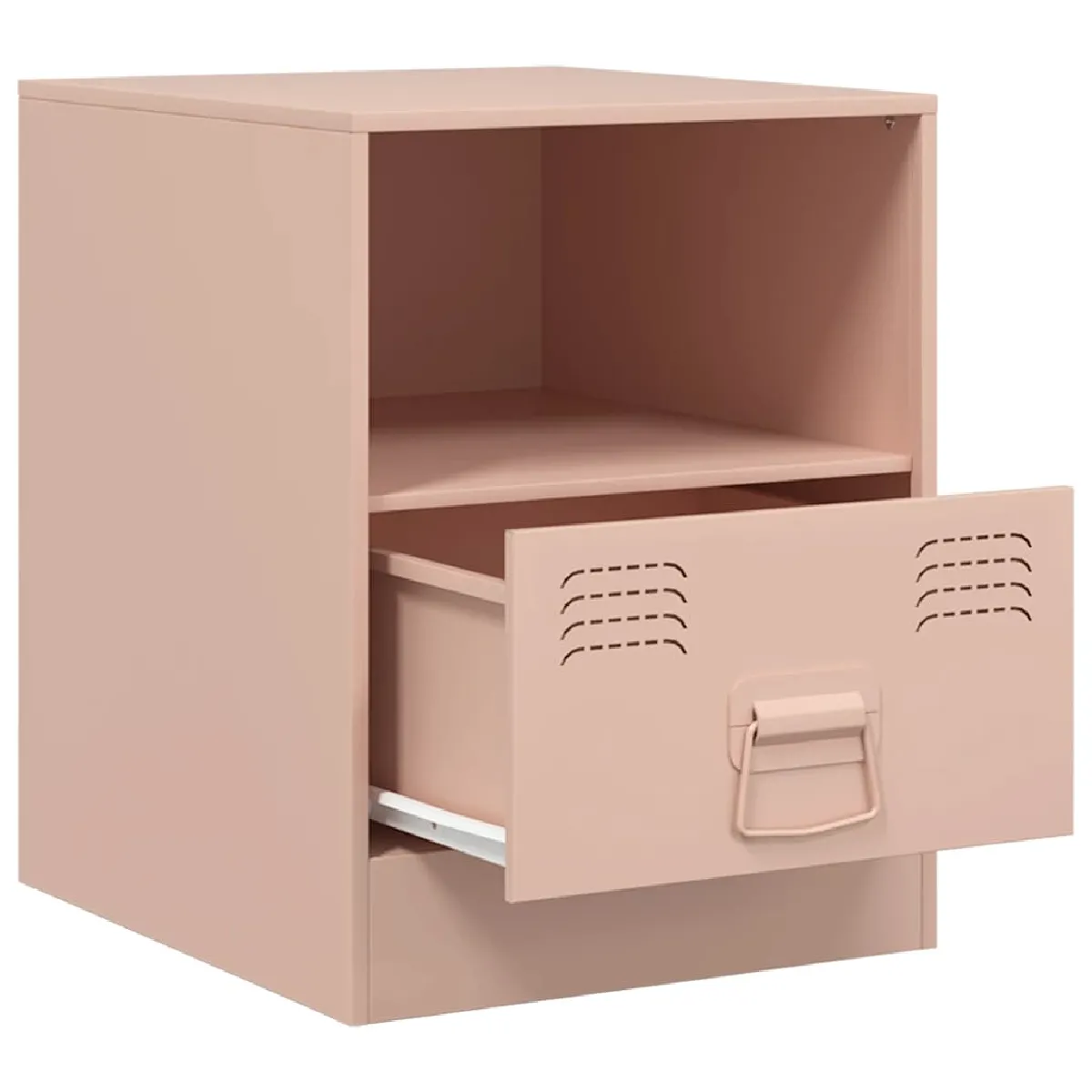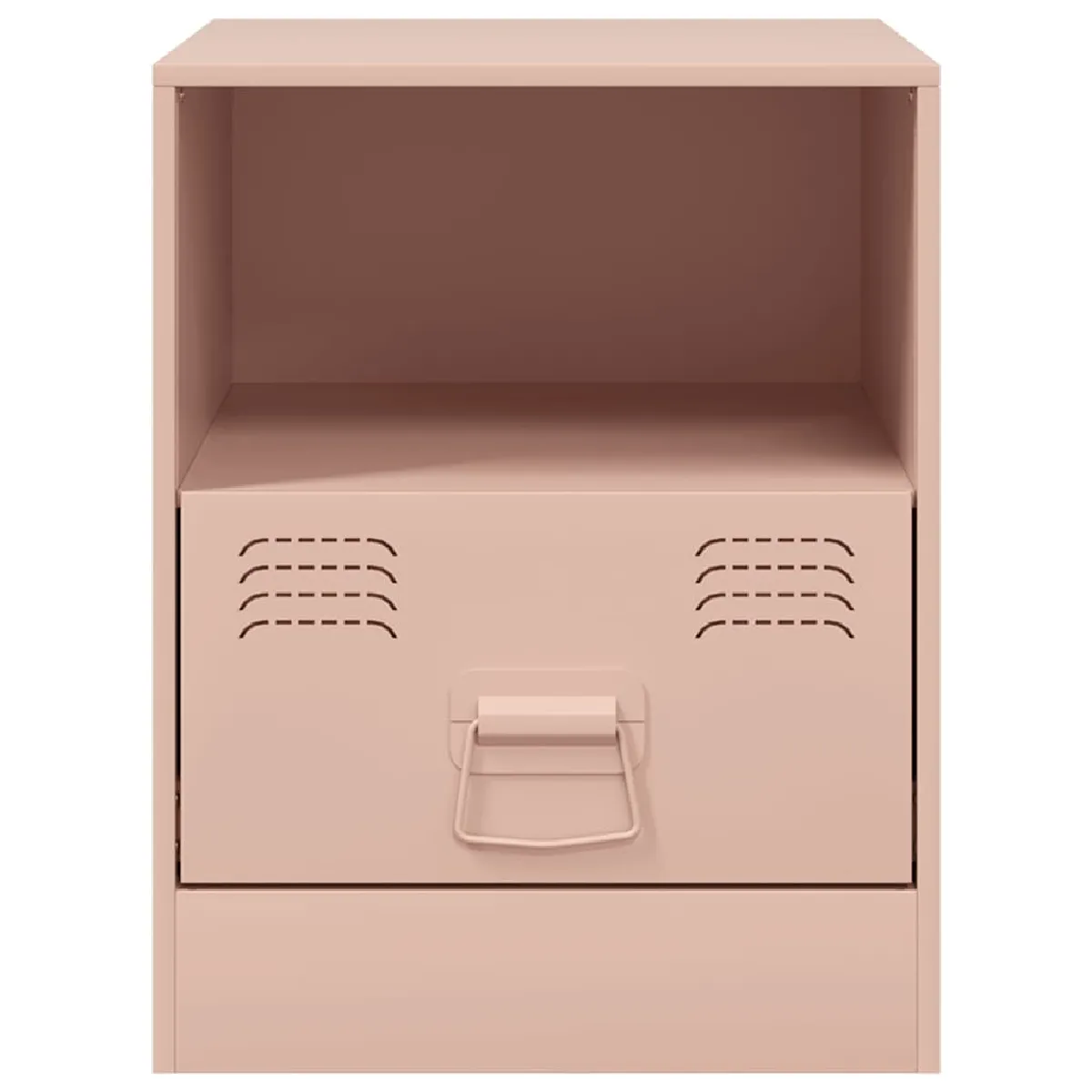 Le duo optimise le rangement de chaque côté du lit grâce à un tiroir pratique et un compartiment ouvert faciles d'accès. La structure en acier laminé à froid à surface lisse assure une bonne stabilité et un entretien simplifié au quotidien. Avec leurs dimensions compactes de 34,5 x 39 x 44 cm, ces chevets trouvent leur place dans une chambre adulte au style industriel sans encombrer l'espace. La teinte rose apporte une note décorative discrète, tandis que la poignée en métal facilite l'ouverture et la fermeture du tiroir. Chaque table supporte jusqu'à 28 kg, pour accueillir lampe, livres et accessoires de nuit avec fiabilité.