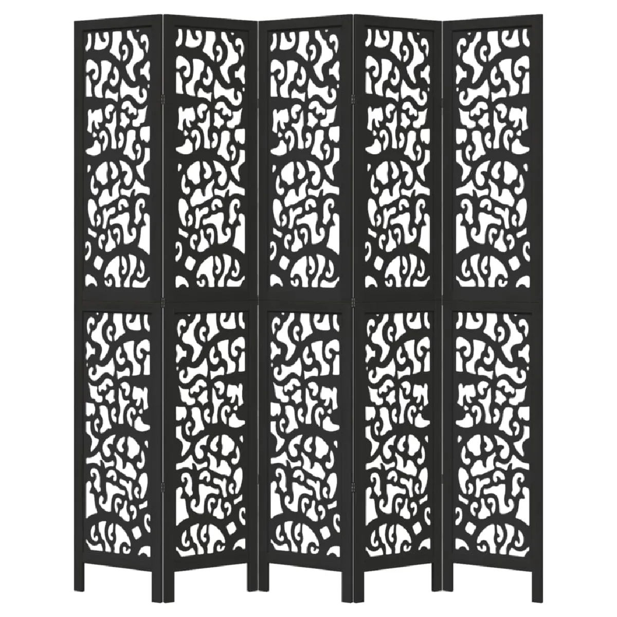 Decoshop26 Paravent séparateur de pièce cloison 5 panneaux en bois de paulownia noir DEC031026 |
