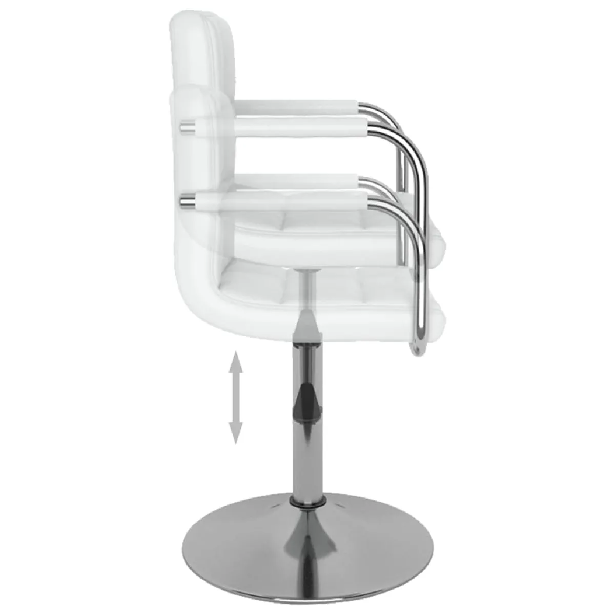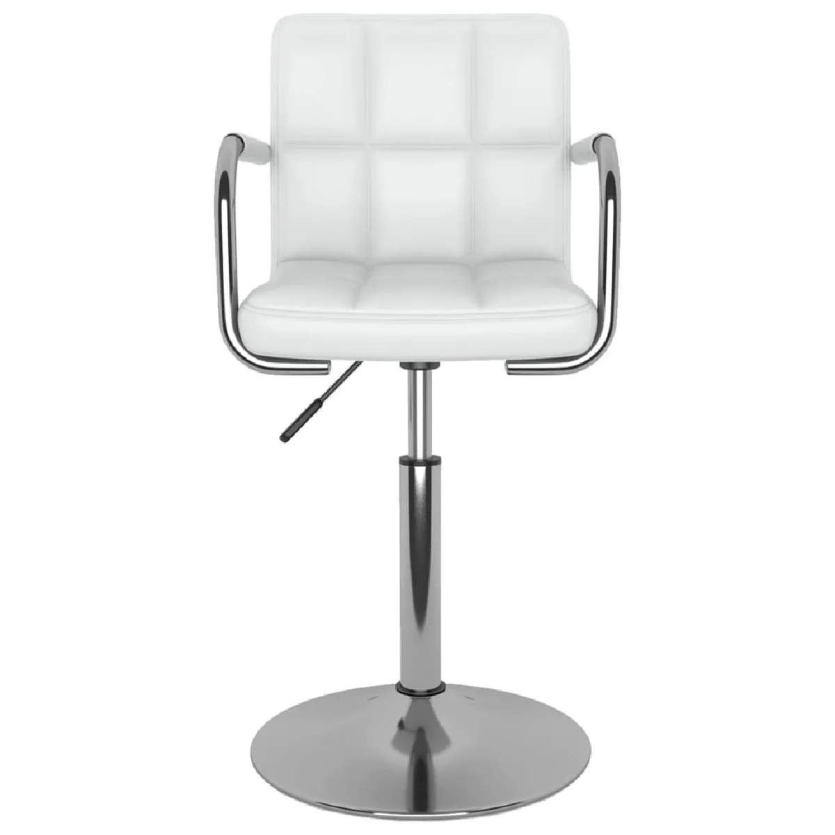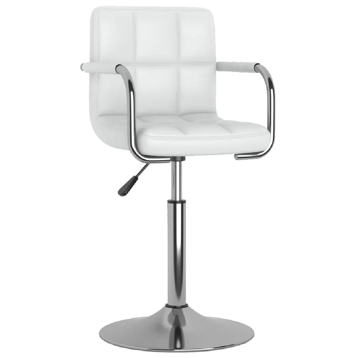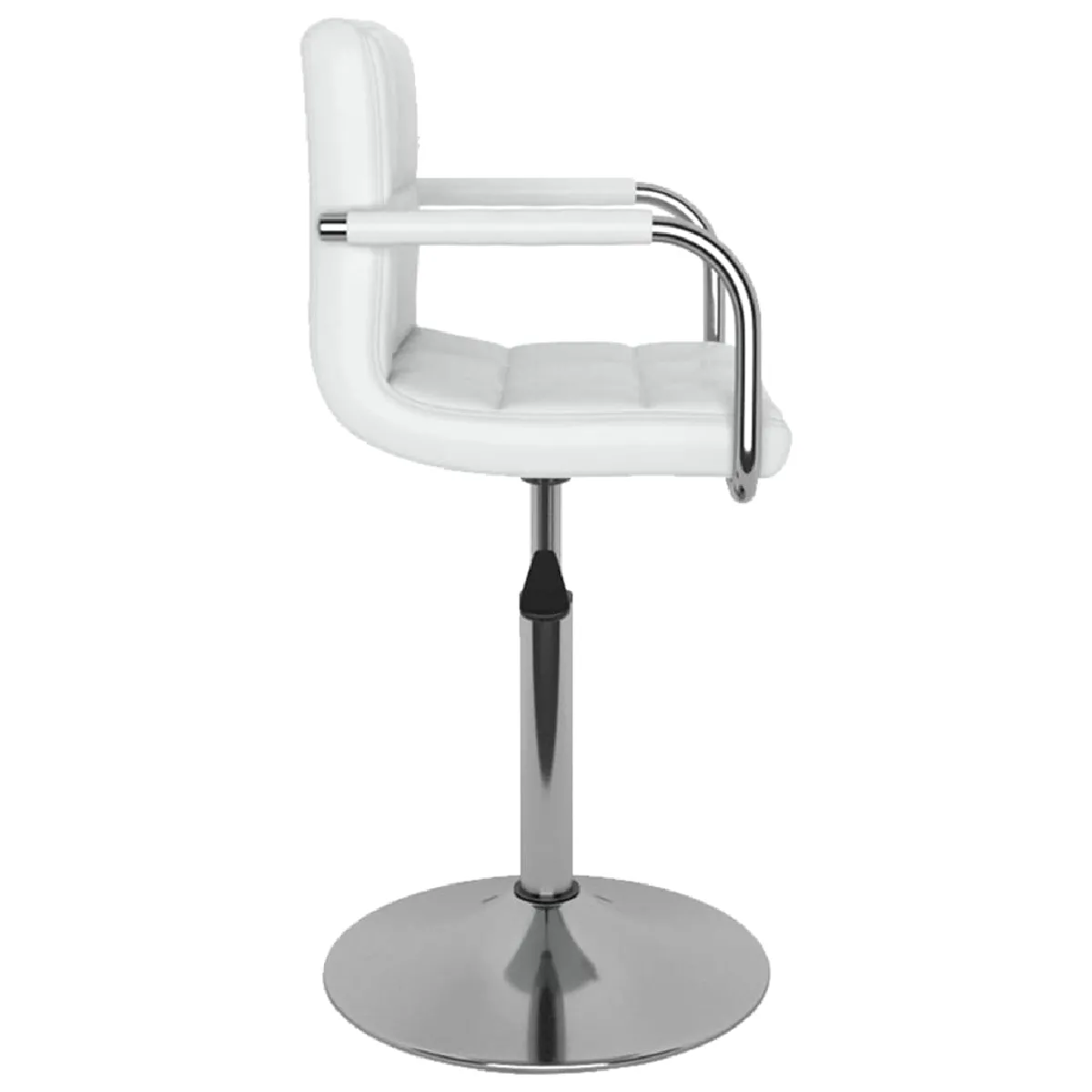 Avec un design soigné mais intemporel, cette chaise de salle à manger vous apportera sûrement le plus grand confort d'assise. La chaise de cuisine est tapissée en similicuir facile à nettoyer pour offrir un confort optimal. Le cadre en acier chromé offre une grande robustesse et stabilité. Grâce au mécanisme de levage à gaz, cette chaise pivotante de salle à manger peut être réglée en hauteur et s’ajoute parfaitement à tout bar fonctionnel ou coin repas. Elle peut également pivoter à 360 degrés pour une grande flexibilité. Couleur : blanc Matériau : acier chromé, similicuir (10 % coton, 60 % polyuréthane, 30 % polyester) Matériau de remplissage : Mousse Dimensions : 48 x 47 x (71-85,5) cm (l x P x H) Largeur du siège : 40 cm Diamètre de la base : 41 cm Pivotement à 360 degrés Mécanisme de levage à gaz Hauteur réglable : oui Accoudoirs : oui L'assemblage est requis
