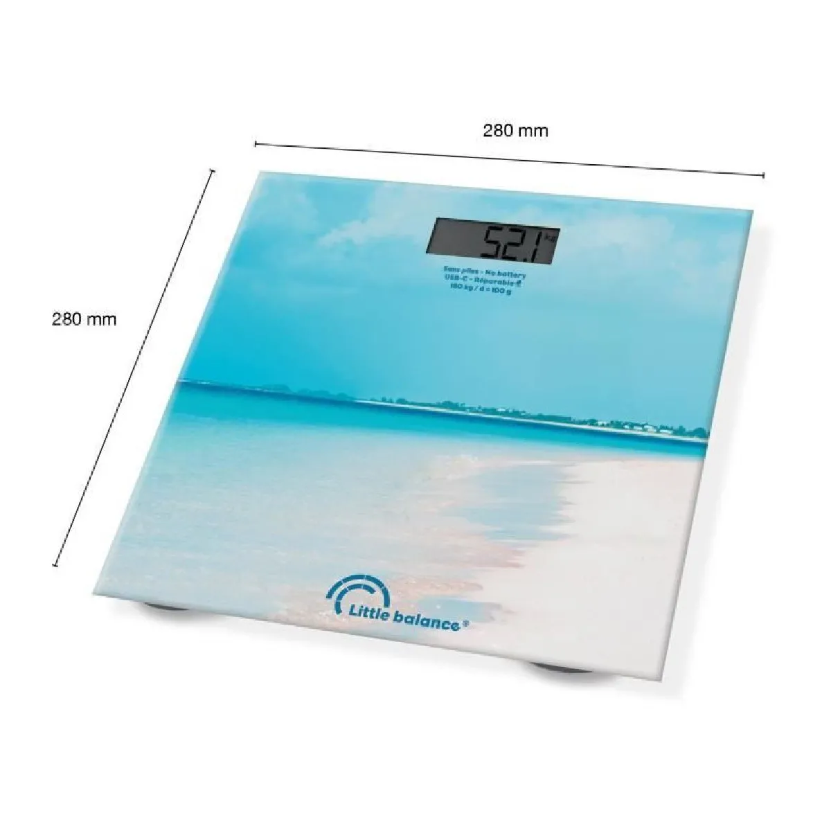 Pèsepersonne électronique rechargeable USBC, surface 28 x 28 cm