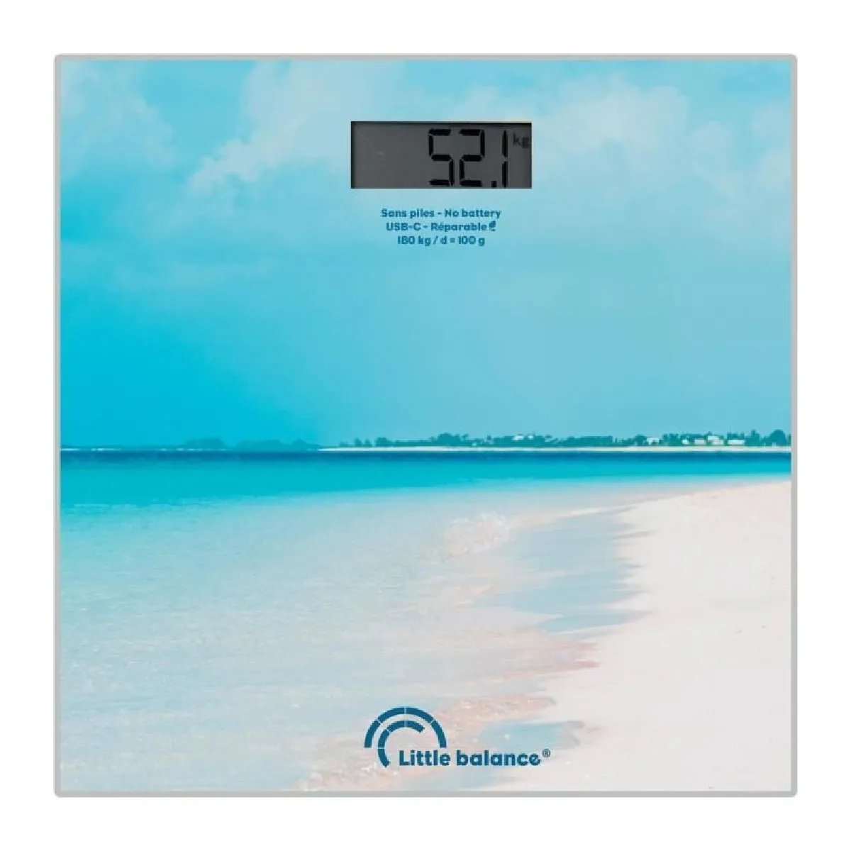 Pèse-personne électronique - Recharge USB-C - Batterie Li-Ion remplaçable - Écran LCD - Base en plastique recyclé - Précision 100 g - Non connecté